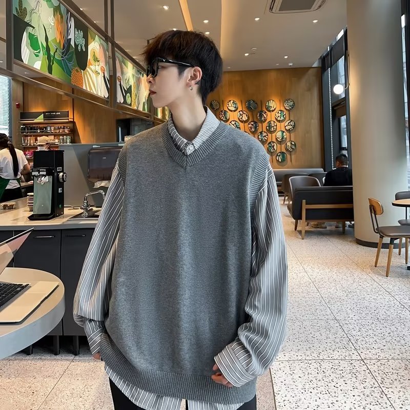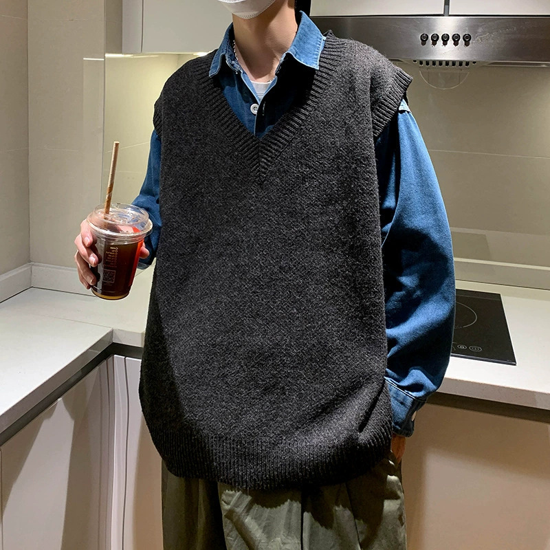니트 조끼 남자의 가을과 겨울 유행 브랜드 스웨터 조끼 한국 유행 느슨한 학생의 V-넥 조끼스토어 가기