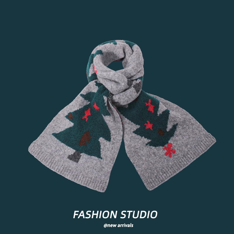 가을과 겨울 니트 편안한 따뜻한 개인화 된 크리스마스 트리 스카프 캐주얼 모든 매치 목 보호 방한 울 스카프