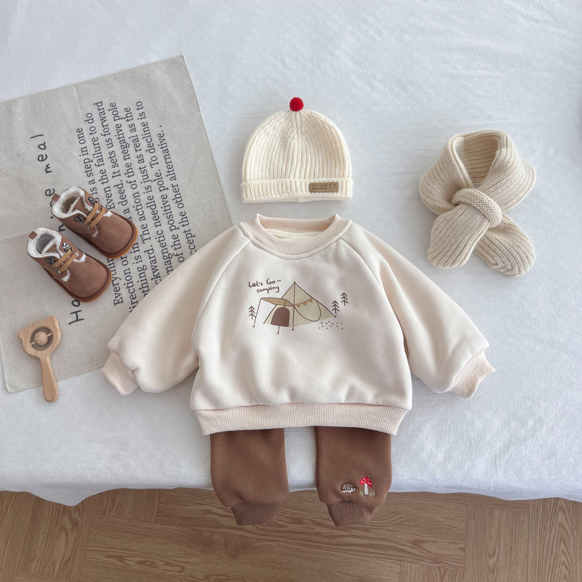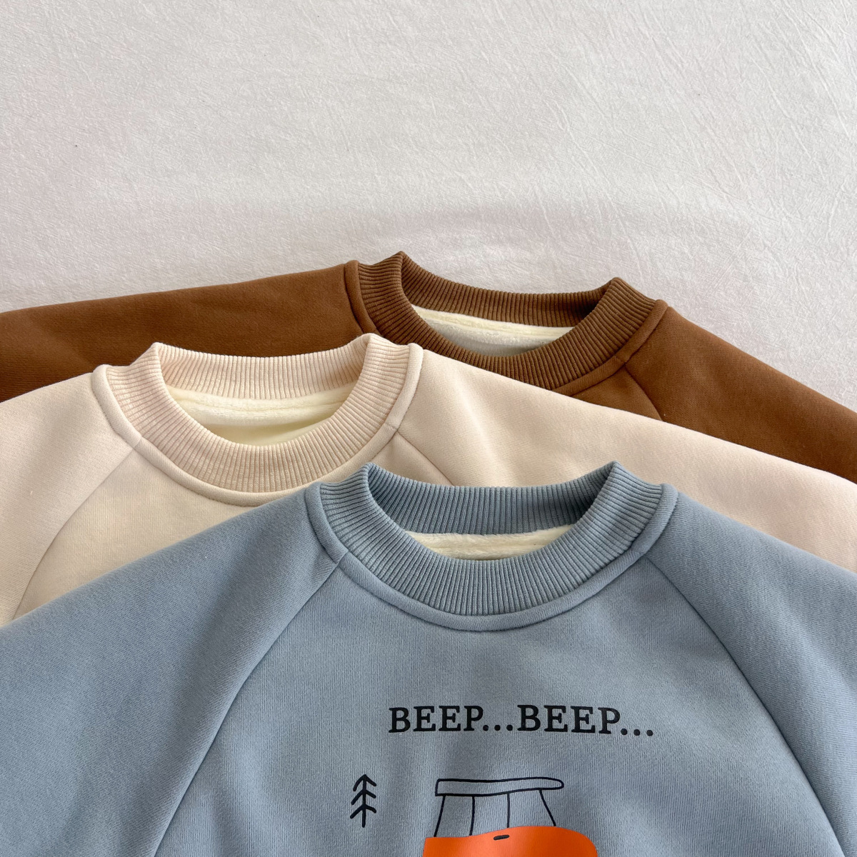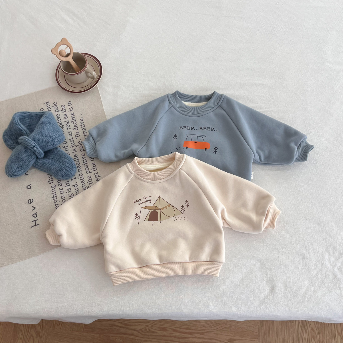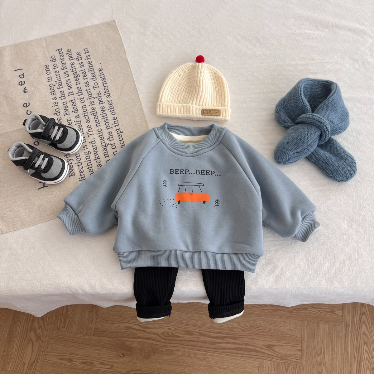 아기 옷 2023 한국 스타일 아기 캐주얼 기모 라운드 넥 스웨터 가을과 겨울 어린이 서양 스타일 만화 따뜻한 재킷스토어 가기