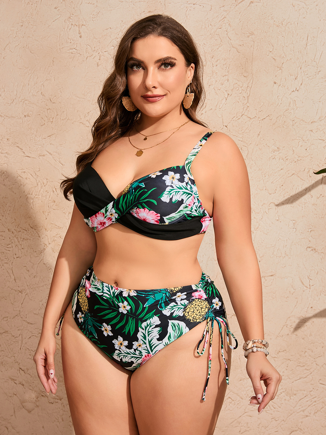 2024년 해외 무역 아마존 분리형 플러스 사이즈 비키니 프린트 푸쉬업 크로스 타이트 수영복 여성용 레트로 스타일