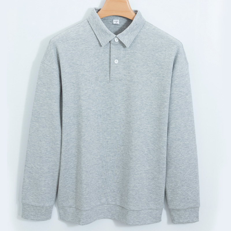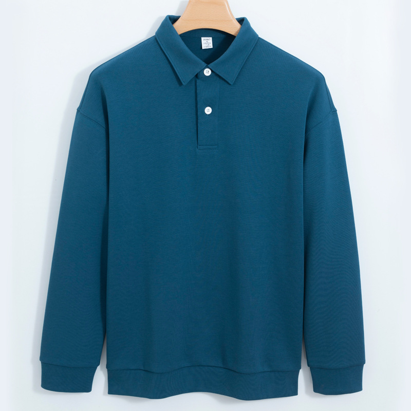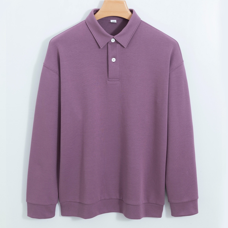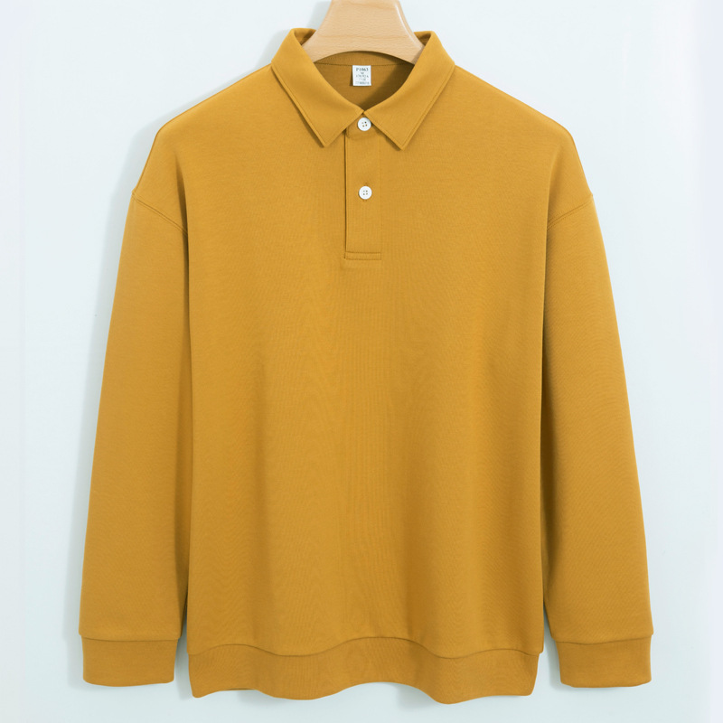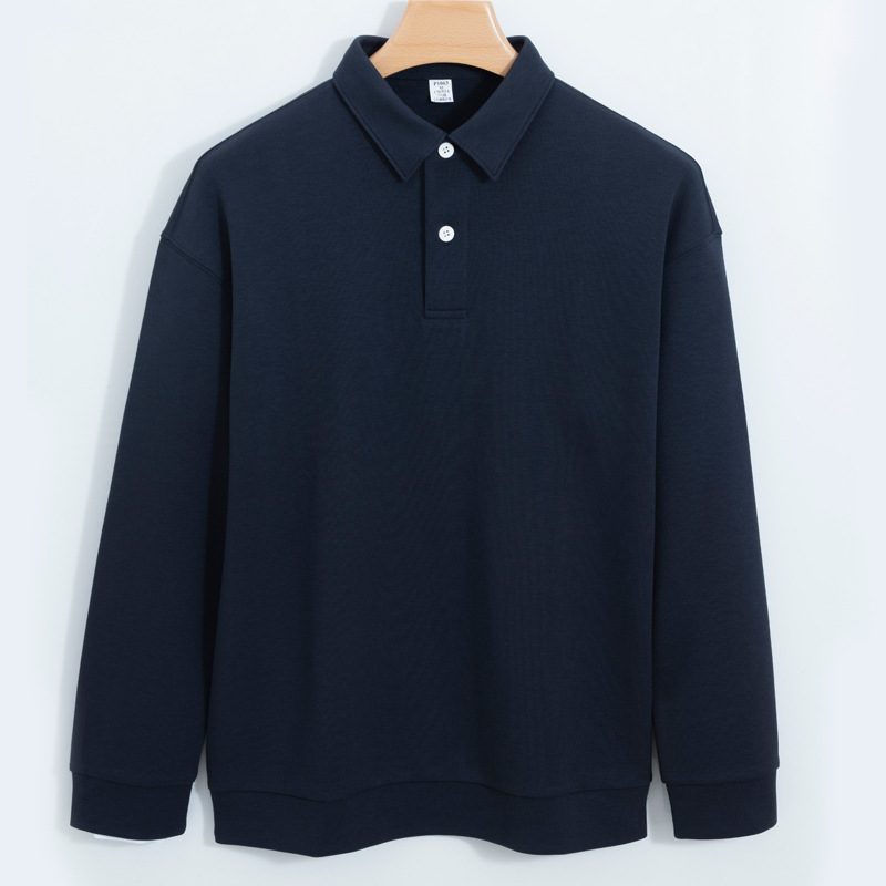 Jiufan 남성용 고급 두꺼운 코튼 폴로 셔츠 스웨터 남성용 솔리드 컬러 루즈한 캐주얼 신장 코튼 아우터 긴팔 1062