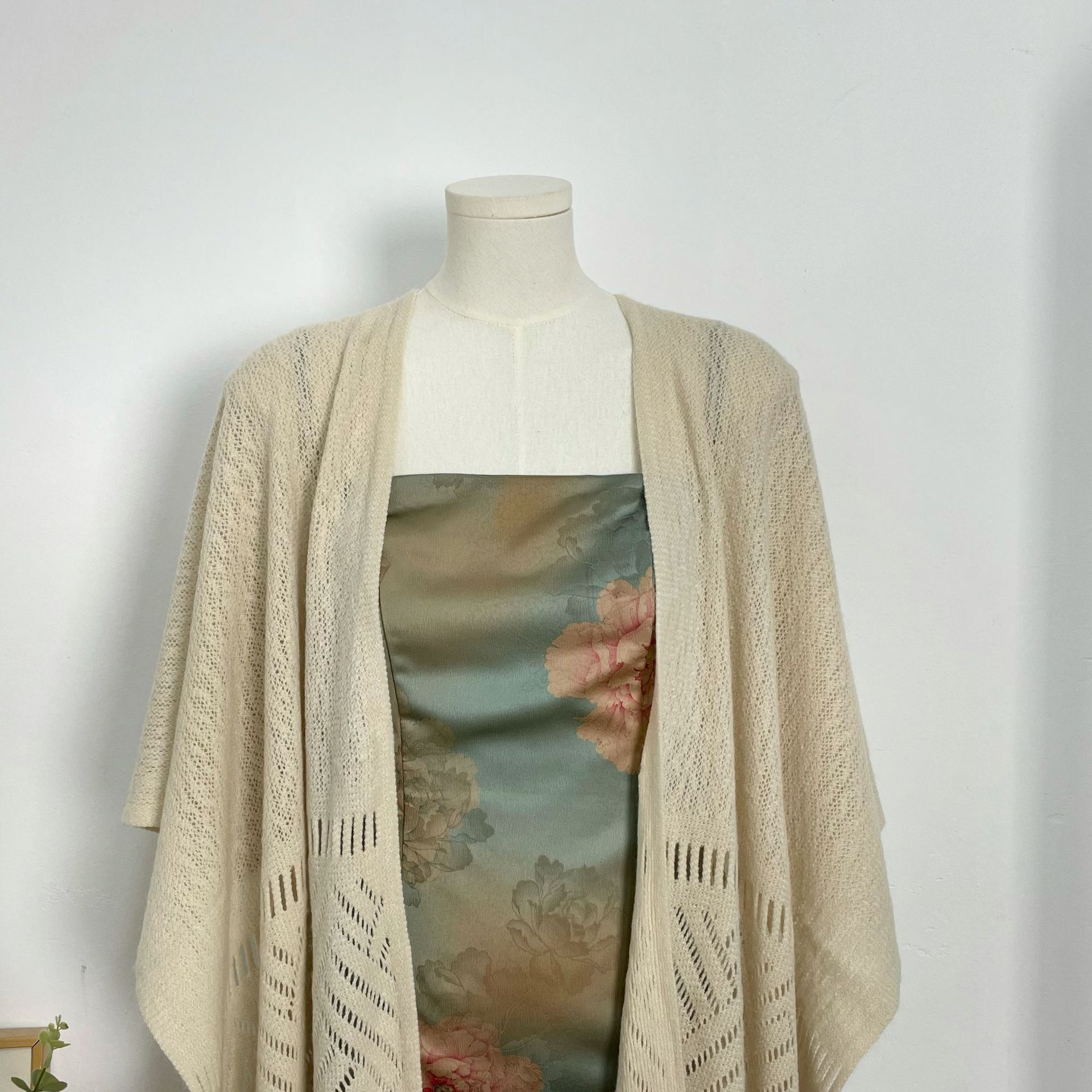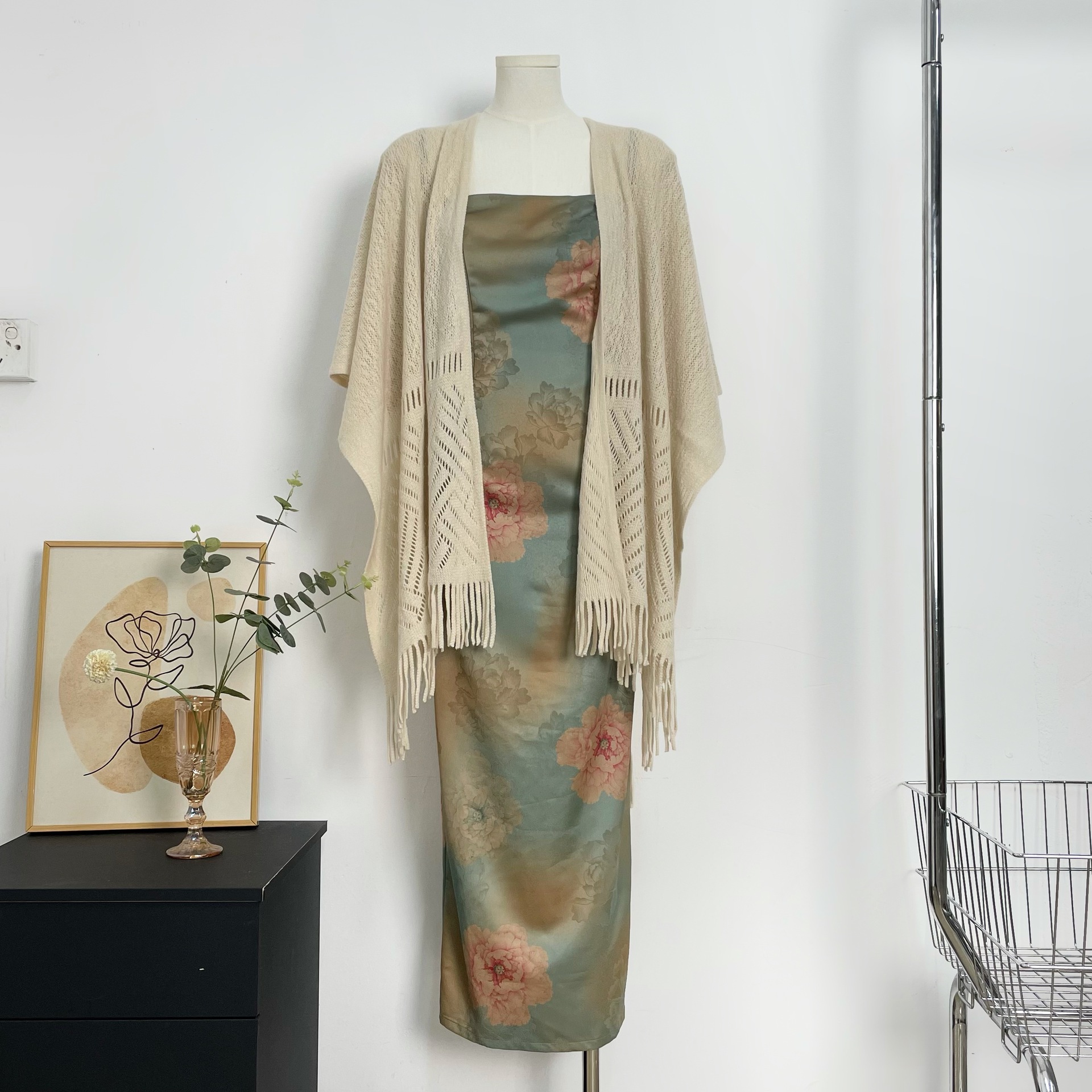 새로운 중국 스타일 복고풍 무거운 자카드 새틴 원피스 + 숄