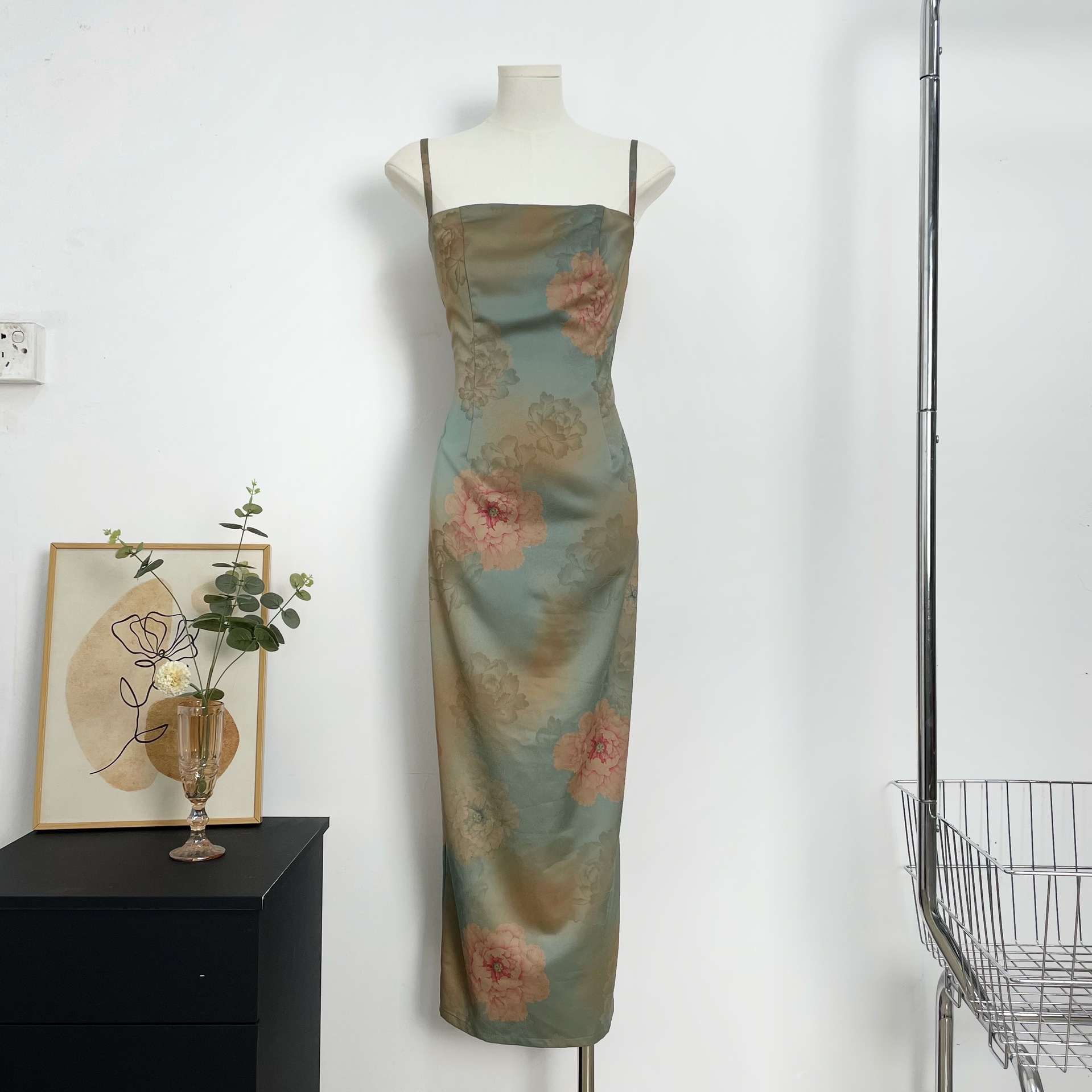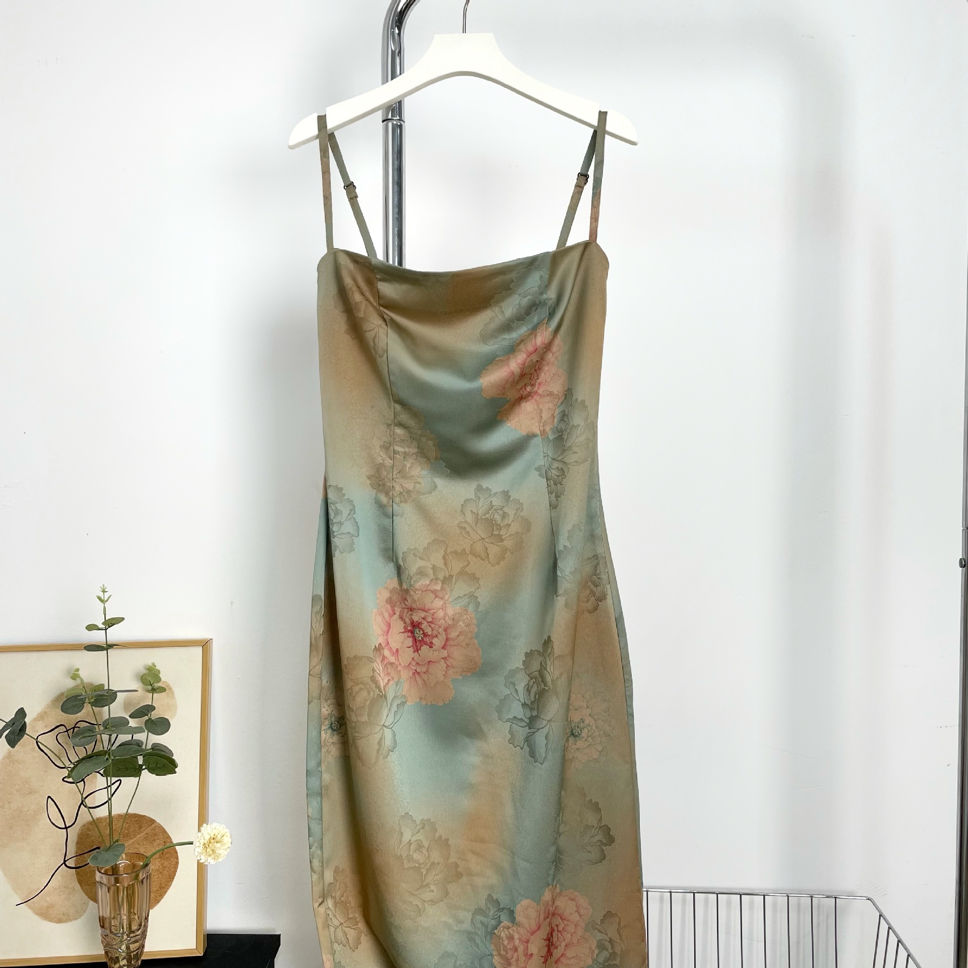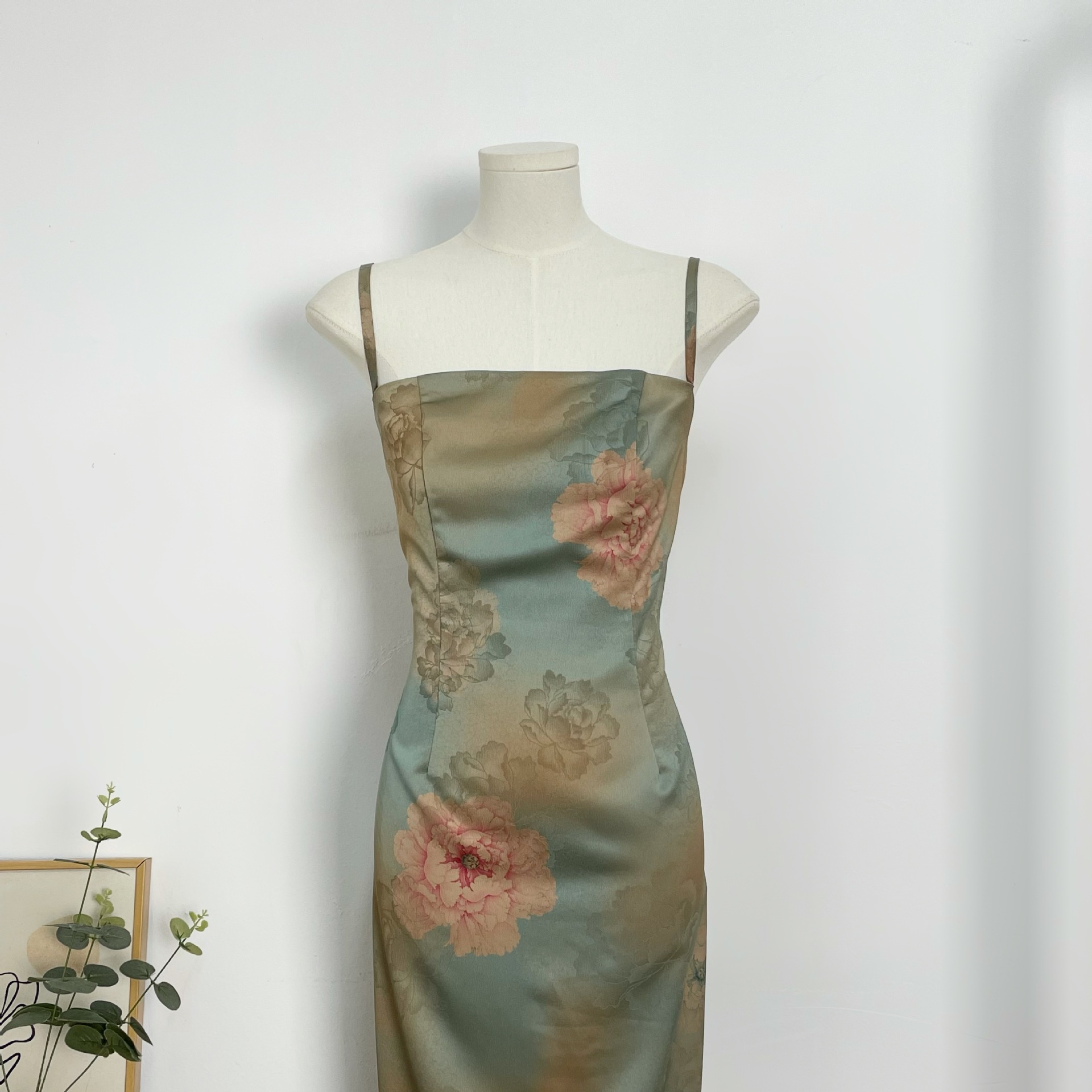 새로운 중국 스타일 복고풍 무거운 자카드 새틴 원피스 + 숄스토어 가기