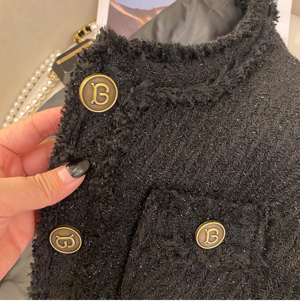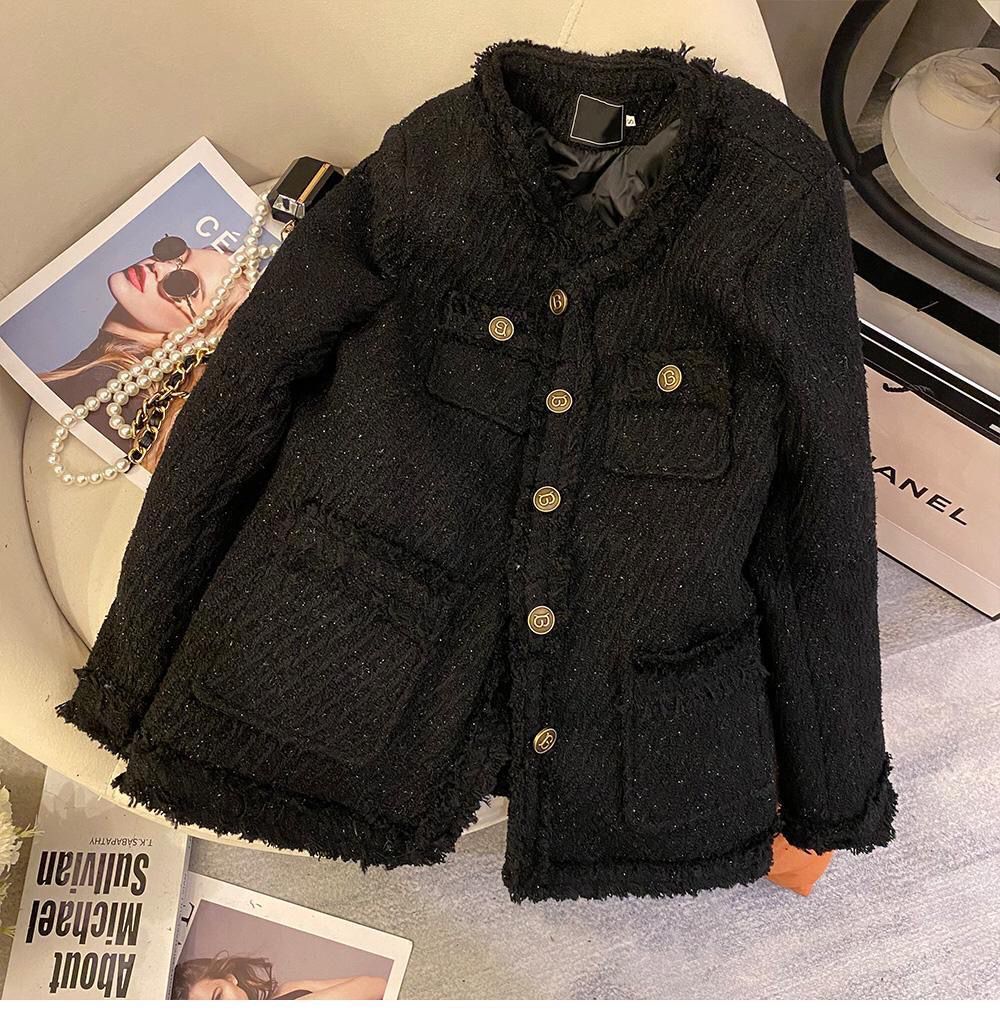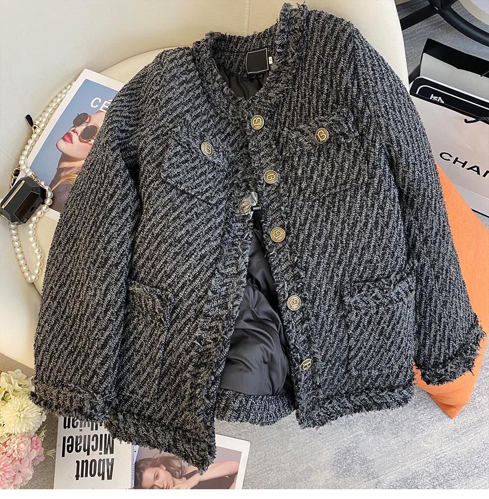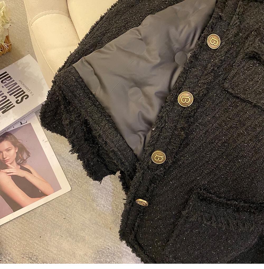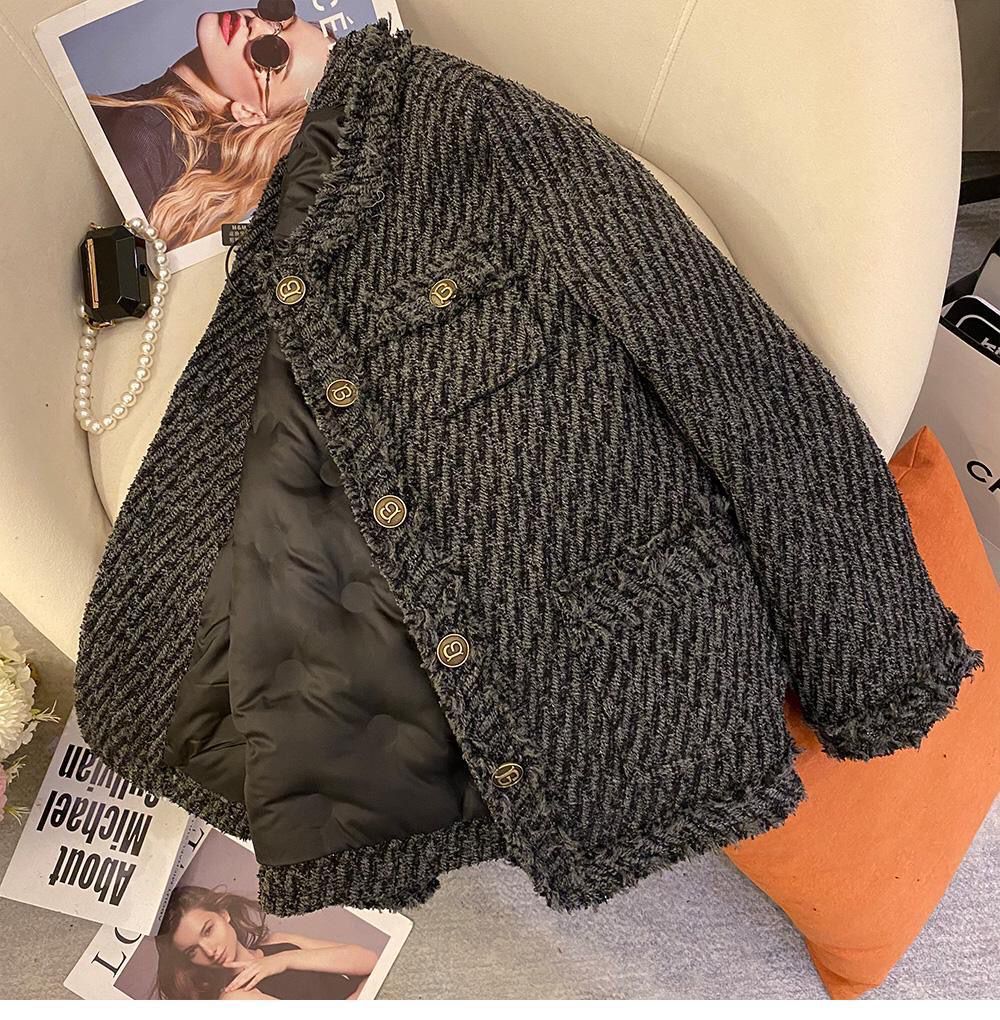 블랙 우아한 샤넬 스타일 다운 재킷 여성 겨울 2023 새로운 고급 프랑스 술 밝은 실크 라이너 재킷스토어 가기