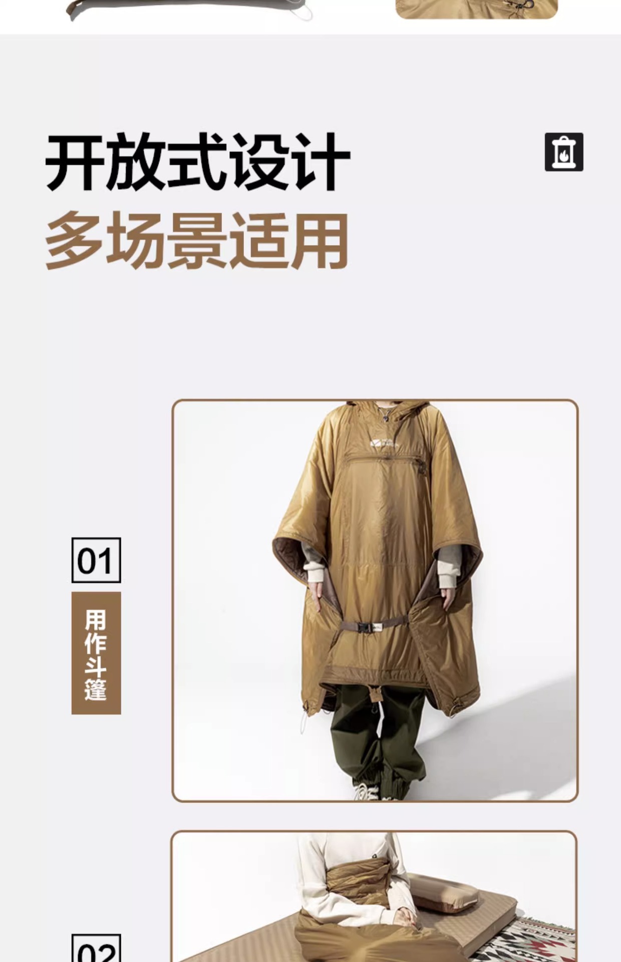 메이지 플루트 침낭 야외 캠핑 방한 웨어러블 망토 방한 면 성인 보온 휴대용 이불 월간스토어 가기
