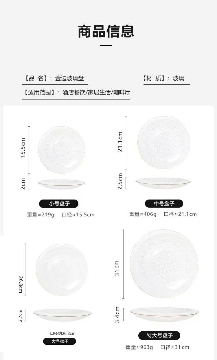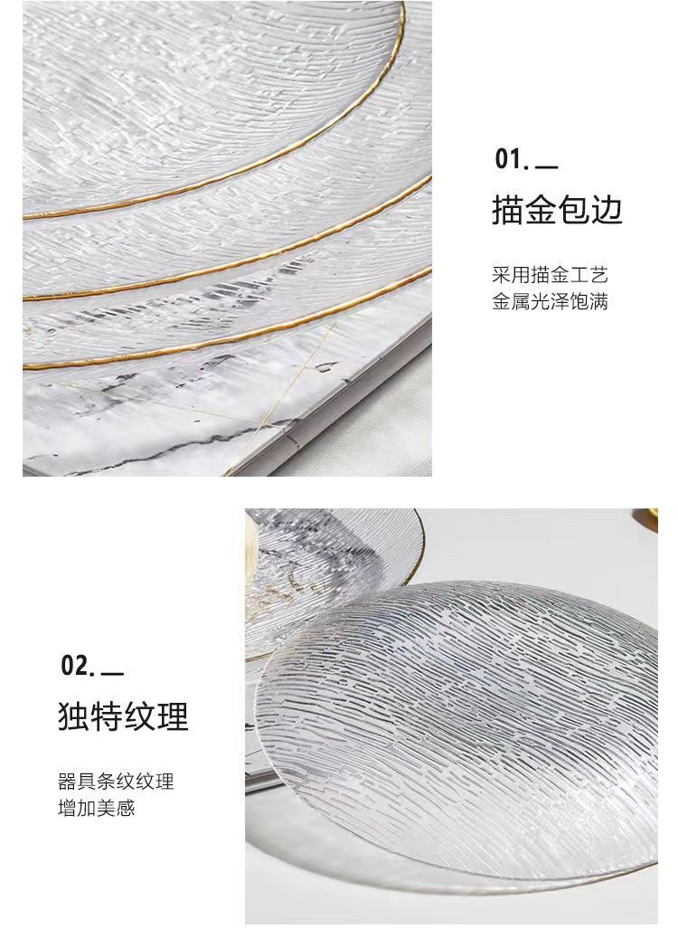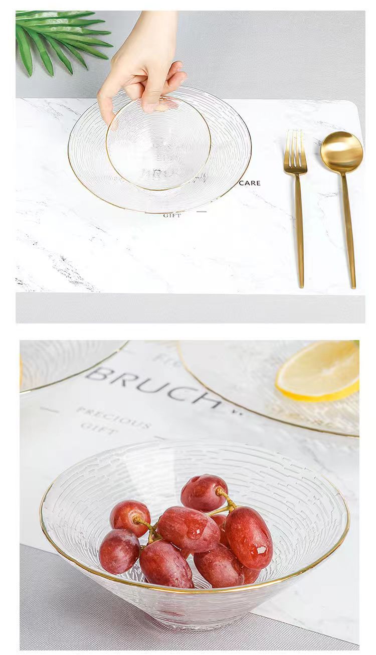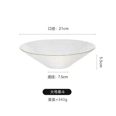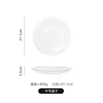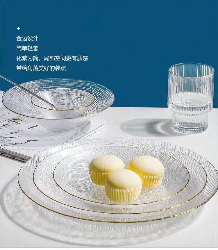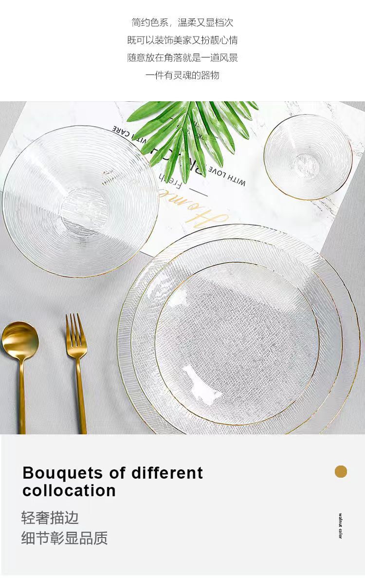 일본식 가로 줄무늬 유리 접시 가정용 투명 식기 접시 서양 음식 유리 과일 샐러드 그릇 저녁 식사 접시 도매스토어 가기
