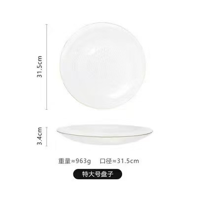 • 금색 가장자리와 수직선이 있는 초대형 접시