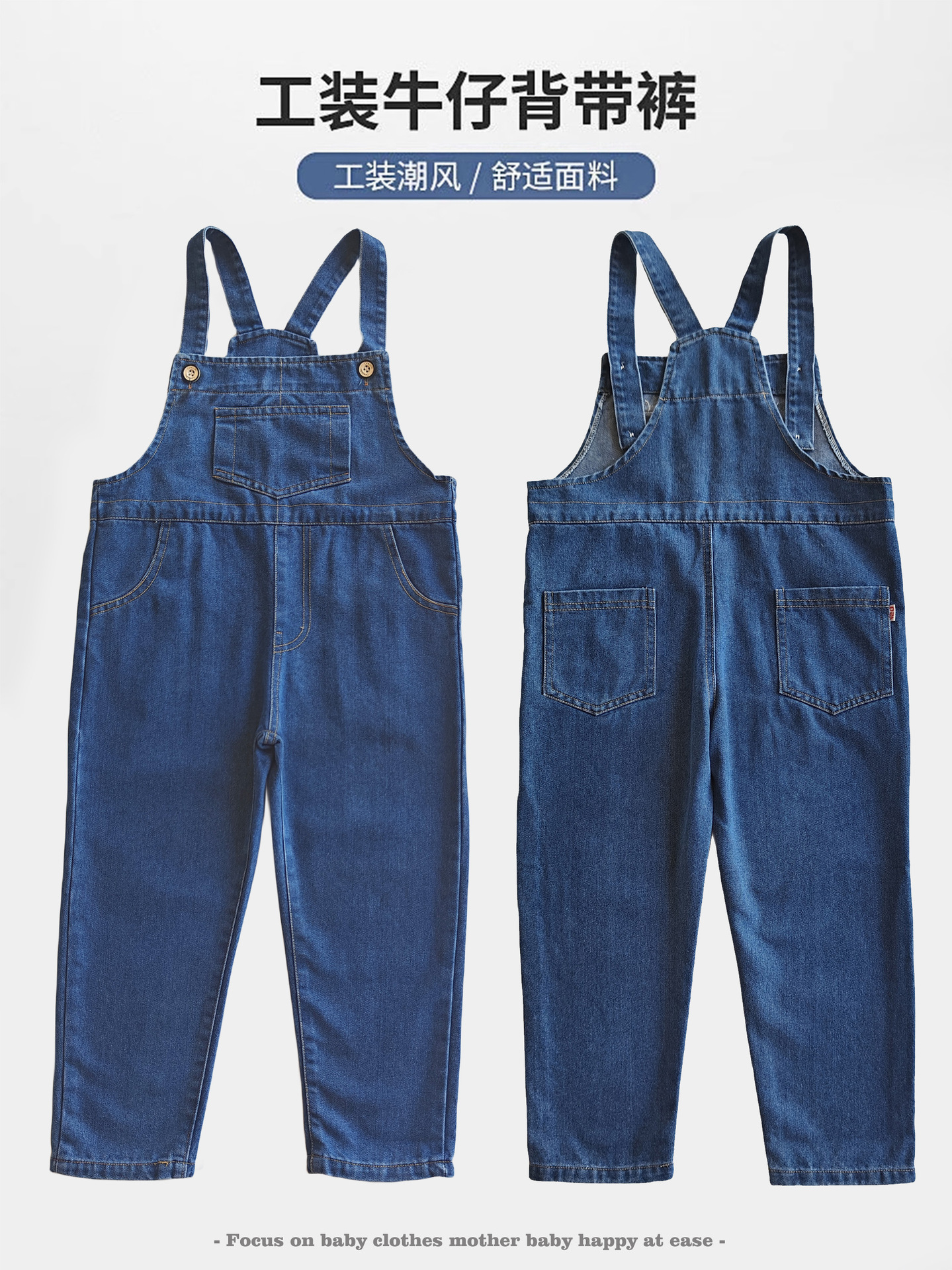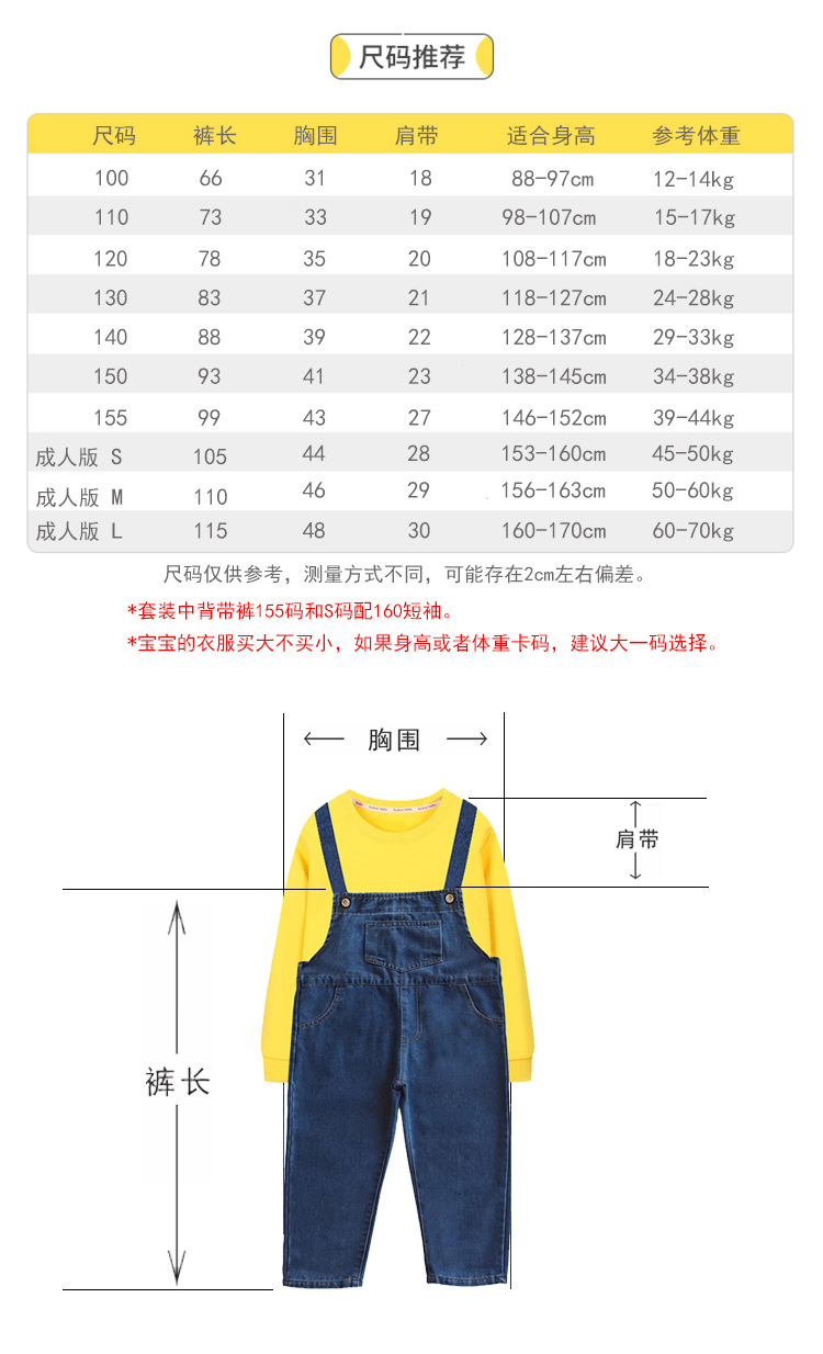 새해 첫날 어린이 공연 의류 미니언 공연 의류 유치원 소년과 소녀 공연 데님 스트랩 바지 세트 가을과 겨울스토어 가기