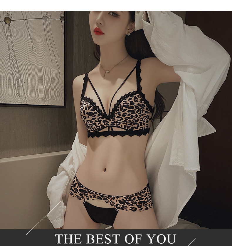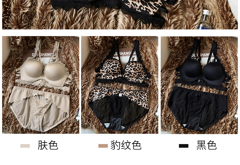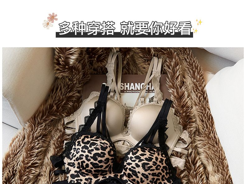 레오파드 무늬 속옷 여자의 작은 가슴 푸시 업 두꺼운 큰 가슴 폐쇄 섹시 레이스 원활한 아름다운 다시 브래지어 팬티 세트