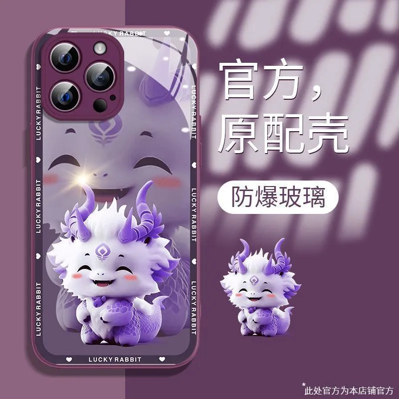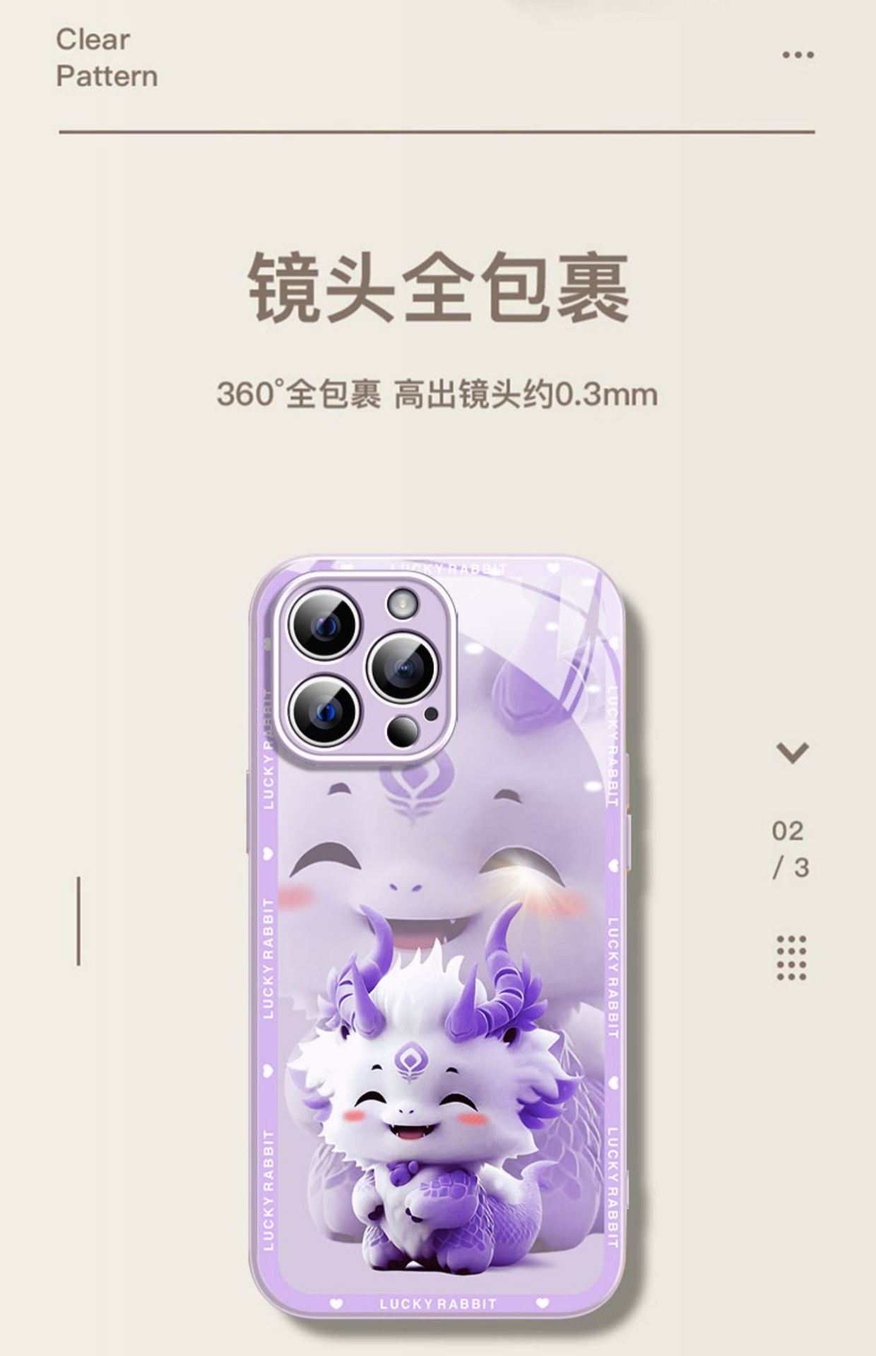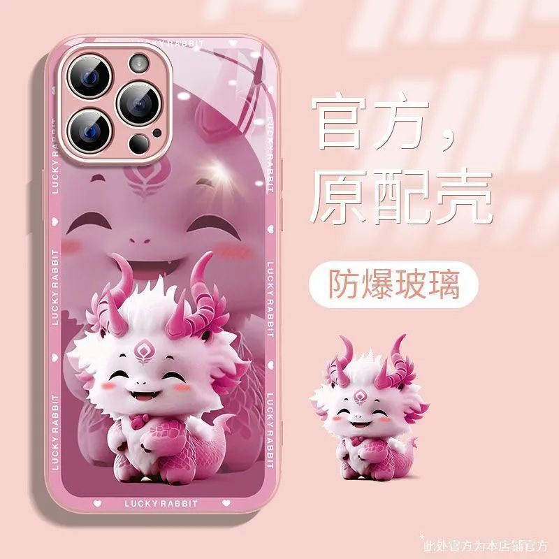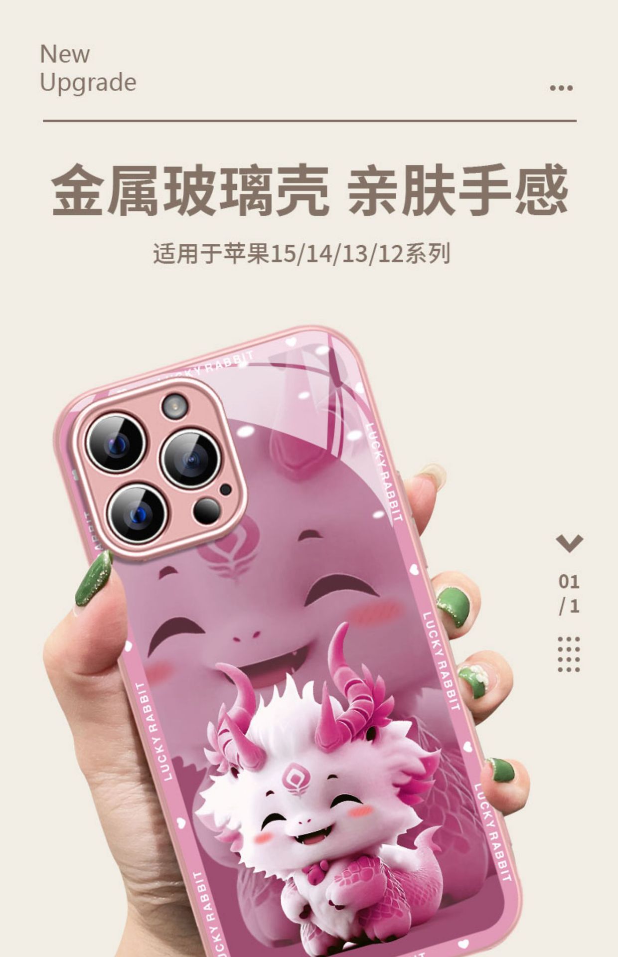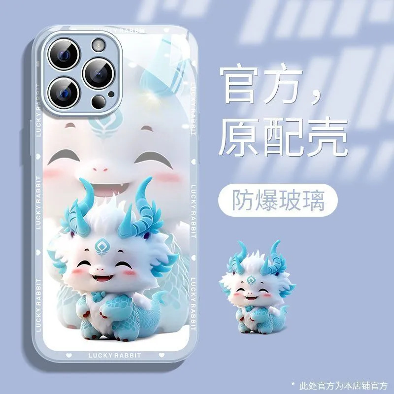 해피 드래곤 베이비 for Apple 15Promax 전화 케이스 고급 감각 유리 IP13 새로운 XS 렌즈 7/8p