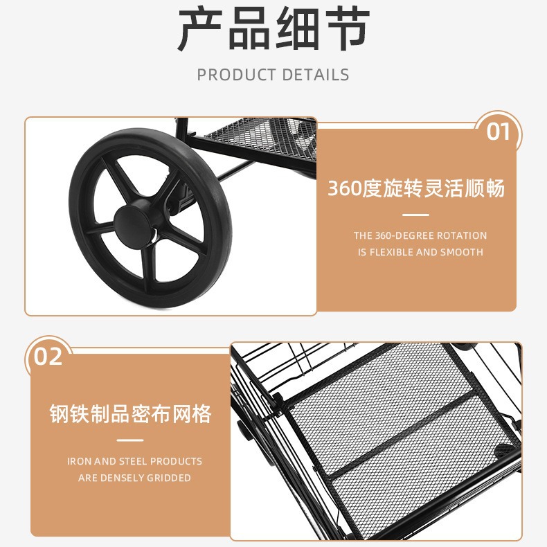 공장 배달 가정용 쇼핑 카트 야채 바구니 식료품 트롤리 블랙 메탈 접이식 경량 노동 절약 디스플레이