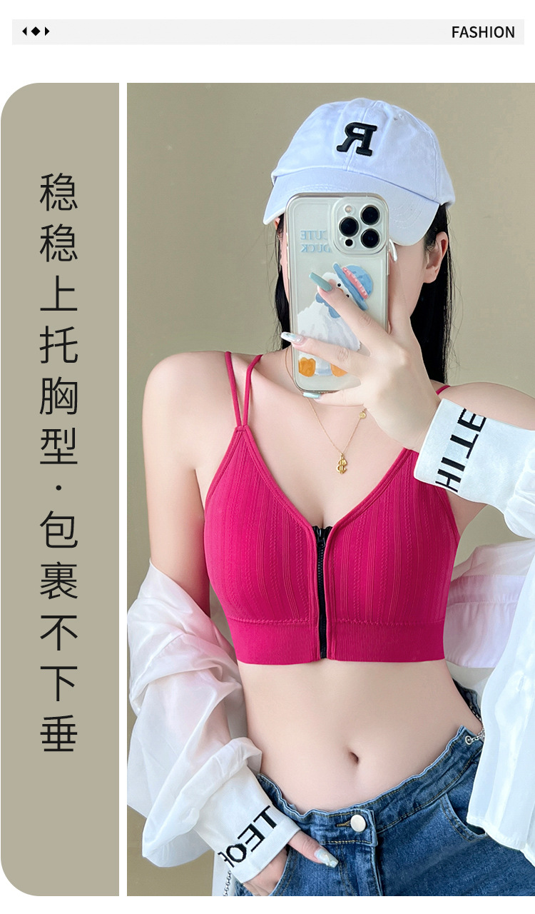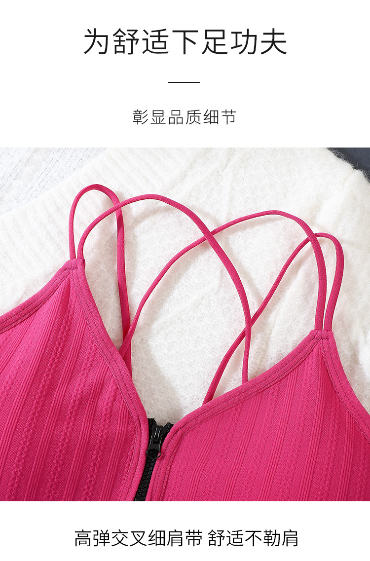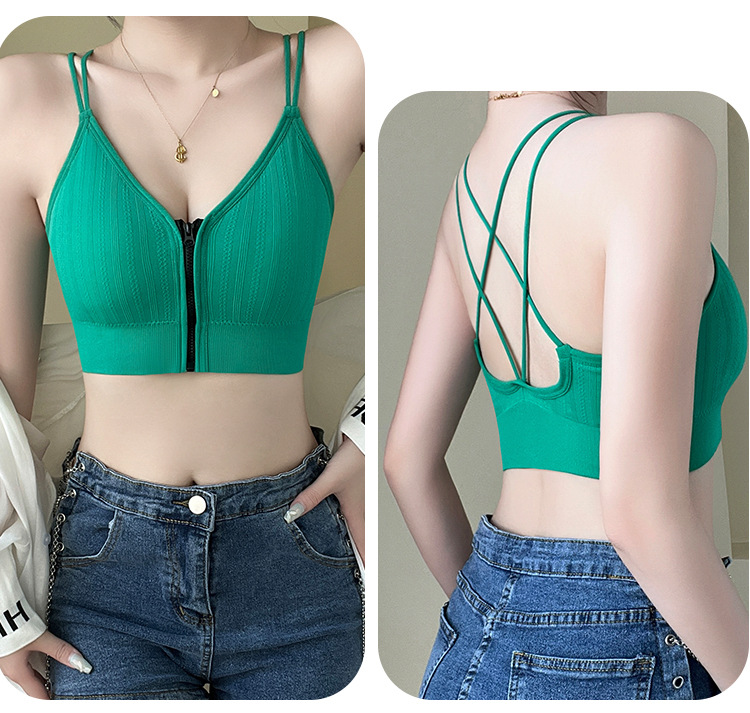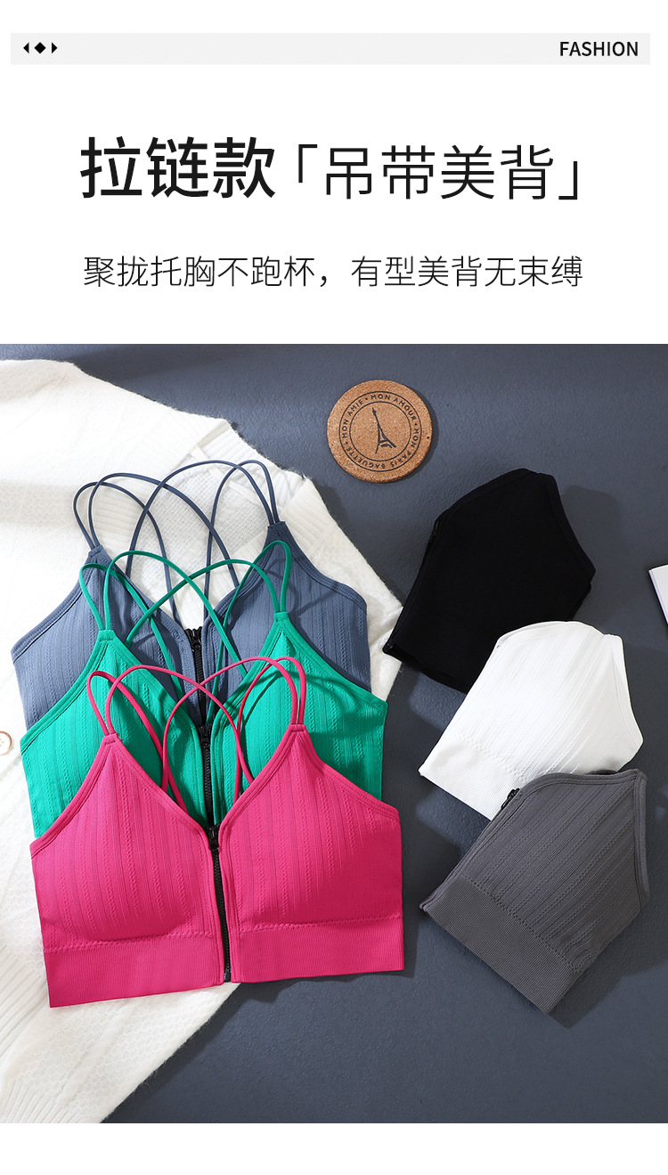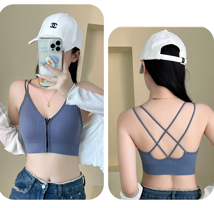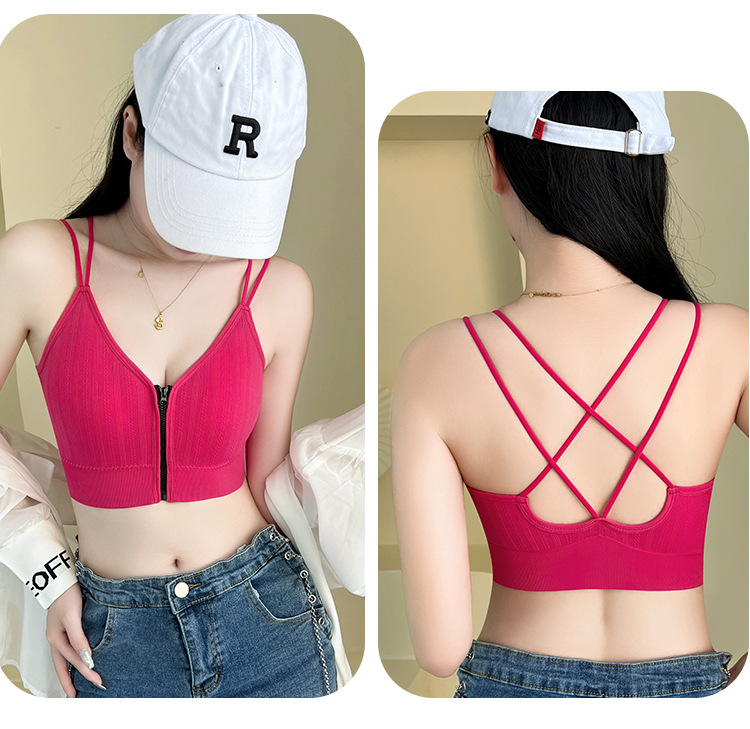 한국 스타일 뷰티 벨트 가슴 패드 백 캐미솔 조끼 뜨거운 소녀 앞 지퍼 디자인 뷰티 백베이스 속옷 탑 여성 트렌디스토어 가기