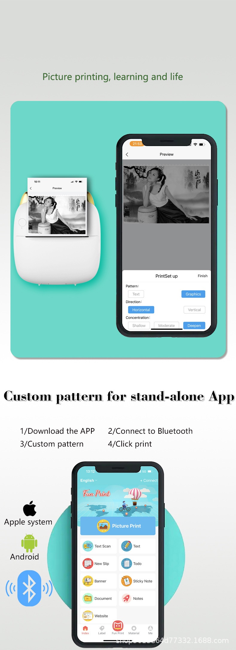 라벨 작은 휴대용 무선 열 사진 블루투스 프린터 포켓 학생 미니 잘못된 질문 라벨 인쇄