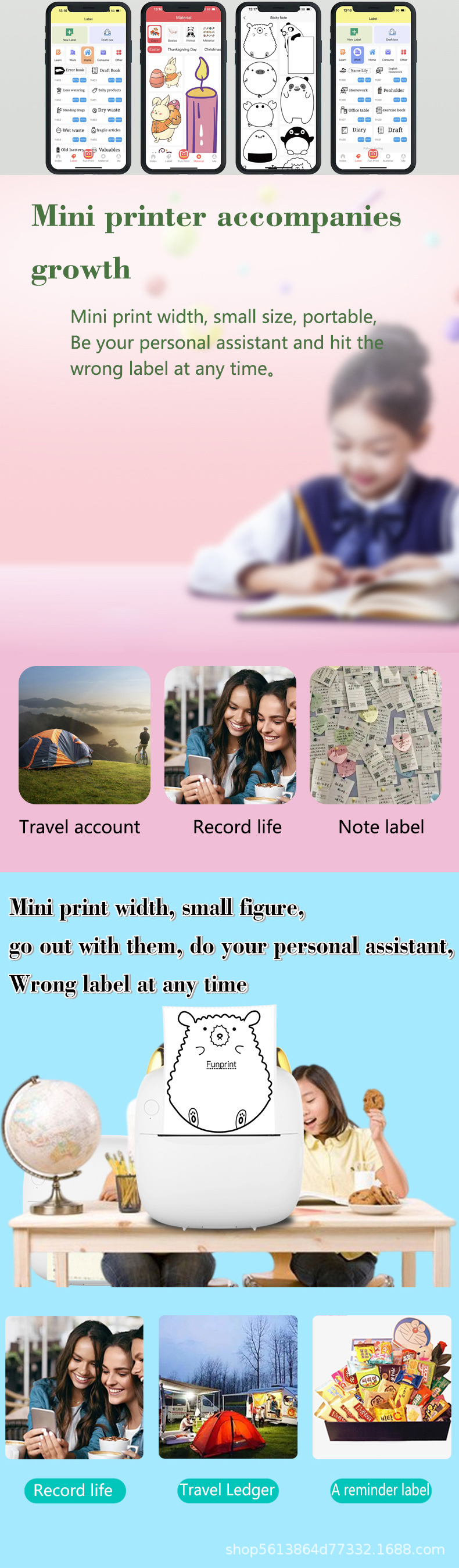 라벨 작은 휴대용 무선 열 사진 블루투스 프린터 포켓 학생 미니 잘못된 질문 라벨 인쇄스토어 가기