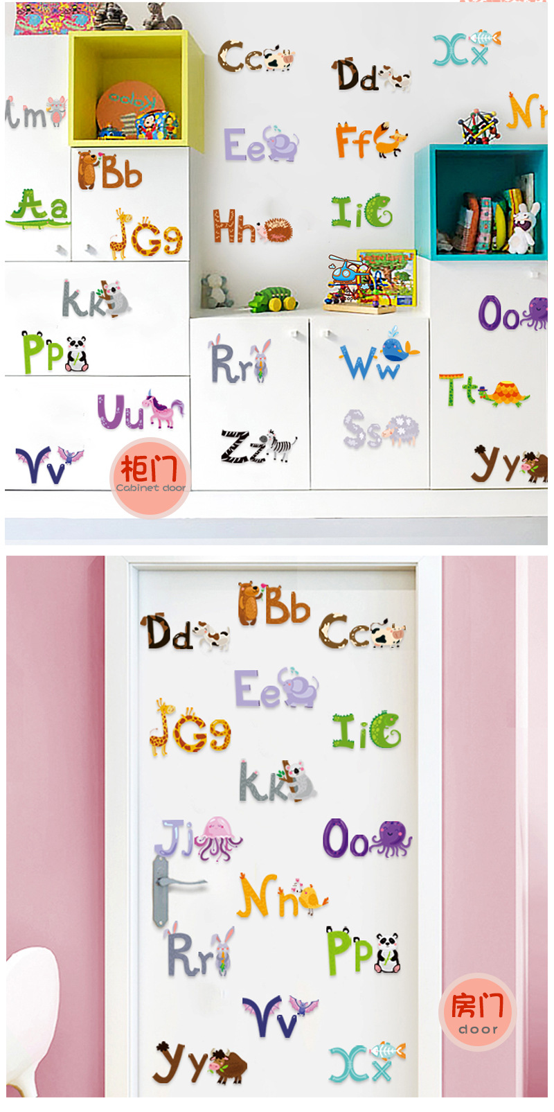 크리 에이 티브 어린이 조기 교육 스티커 자체 접착 영어 알파벳 귀여운 동물 벽지 유치원 방 벽 장식스토어 가기