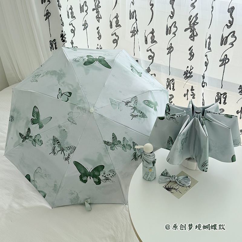 도매 디지털 인쇄 태양 우산 복고풍 우산 유화 휴대용 자동 맑고 비오는 이중 사용 여성 선 스크린 햇빛 우산