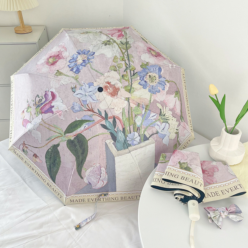 도매 디지털 인쇄 태양 우산 복고풍 우산 유화 휴대용 자동 맑고 비오는 이중 사용 여성 선 스크린 햇빛 우산스토어 가기