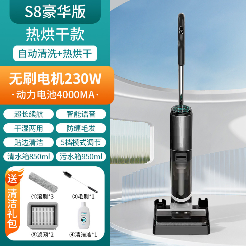 손으로 밀기 가정용 스위퍼 지능형 스위퍼 흡입, 스윕 및 드래그 일체형 기계 싱글 롤러 브러시 자동 고온 건조 걸레질 기계