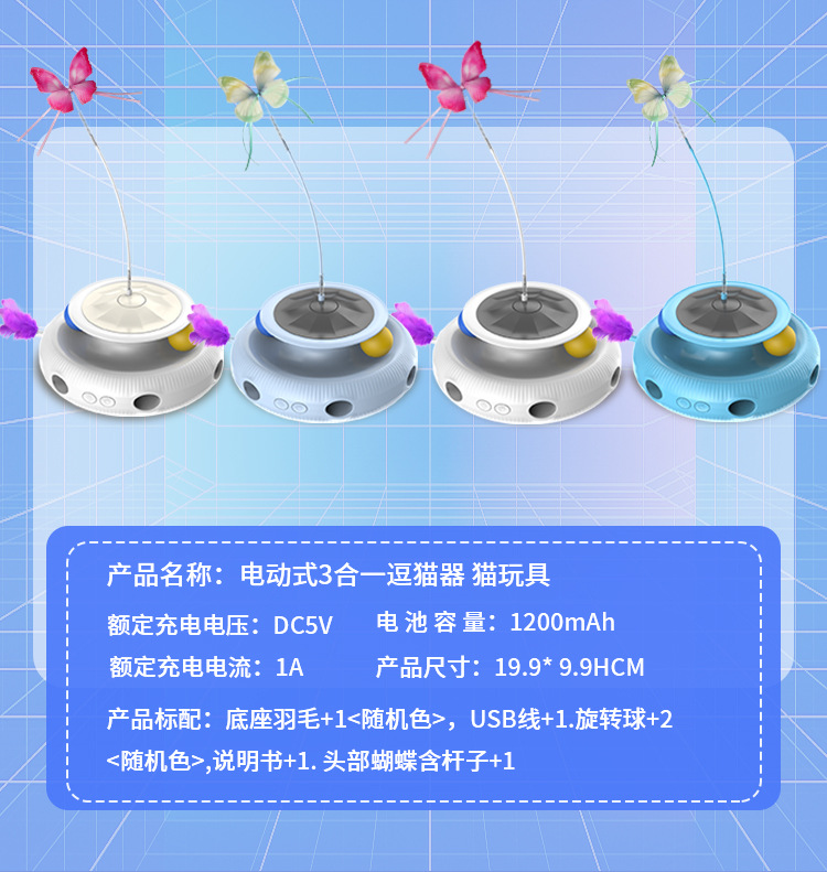 工厂直销宠物逗猫玩具,跨境智能三合一猫咪蝴蝶玩具宠物逗猫羽毛打洞机自嗨逗猫棒玩具支持跨境电商,量大可以定制颜色,LOGO,包装,欢迎详谈!