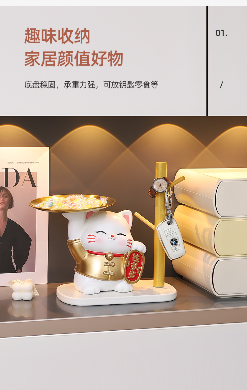 크리 에이 티브 럭키 고양이 집들이 새 집 키 보관 수지 장식품 거실 TV 캐비닛 홈 장식 회사 선물