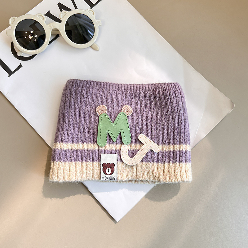 Puchun 일본과 한국 스타일 어린이 스카프 편지 울 목 세트 헤어 밴드 겨울 아기 소년과 소녀를위한 귀여운 따뜻한 목