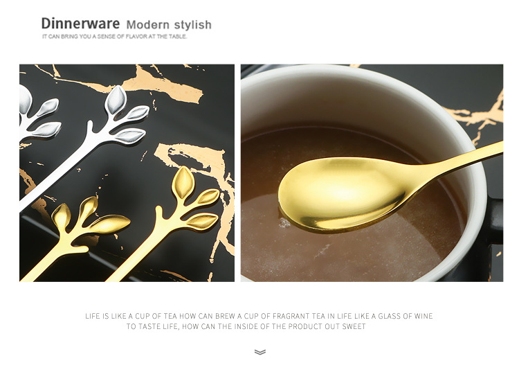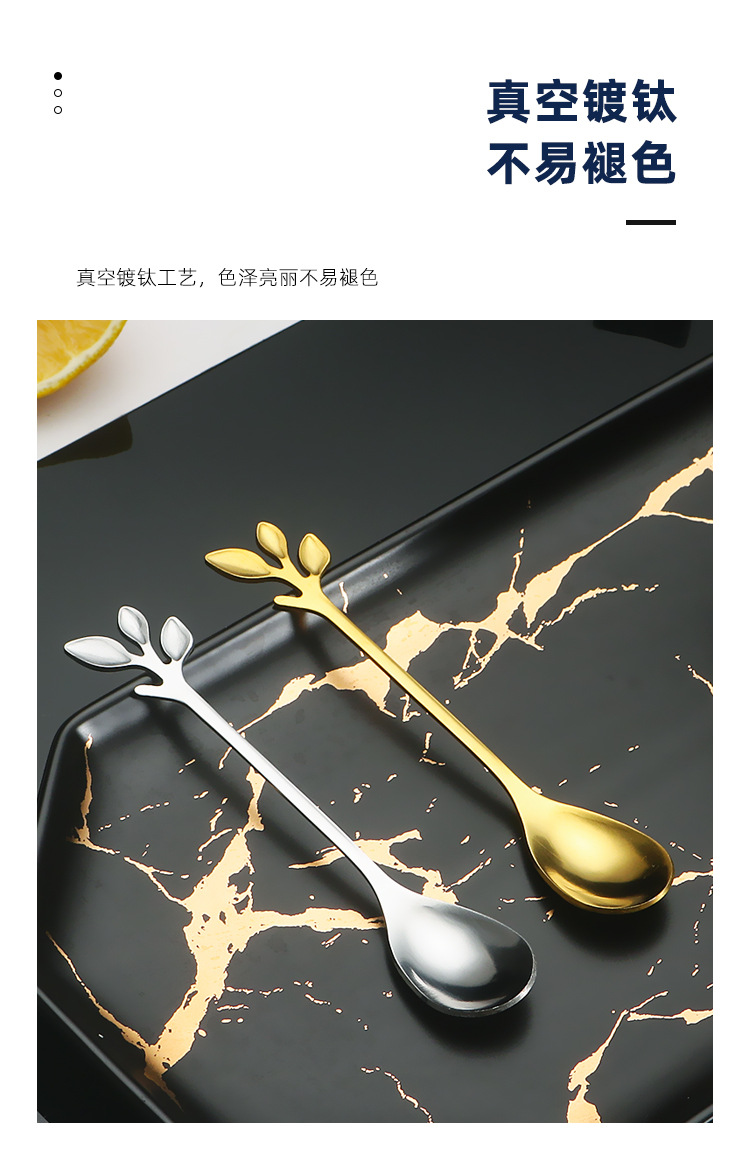 스테인레스 스틸 리프 스푼 크리 에이 티브 아이스크림 스푼 커피 교반 스푼 황금 디저트 스푼 과일 포크 선물 스푼스토어 가기