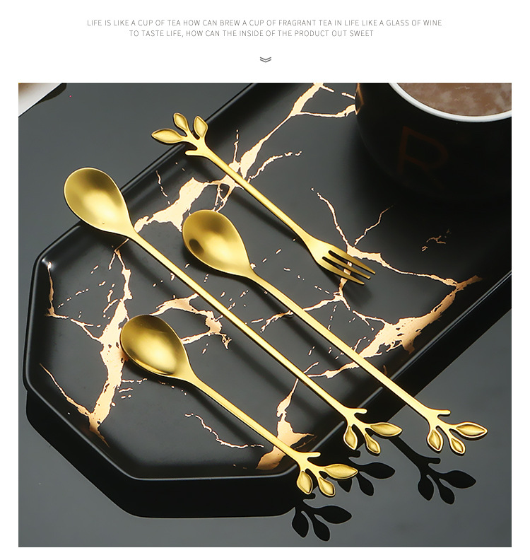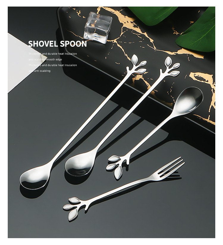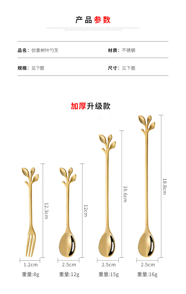 스테인레스 스틸 리프 스푼 크리 에이 티브 아이스크림 스푼 커피 교반 스푼 황금 디저트 스푼 과일 포크 선물 스푼