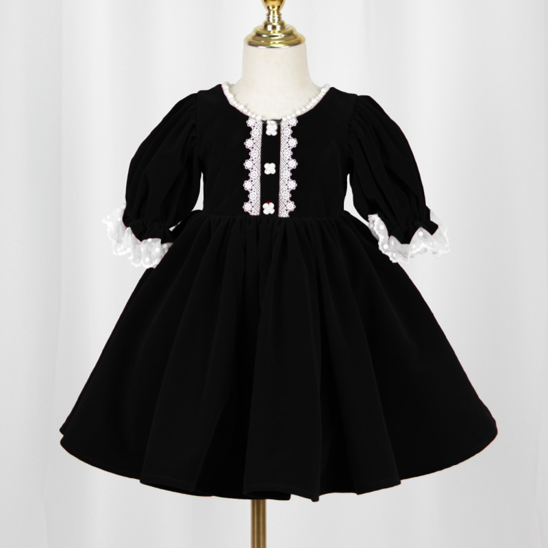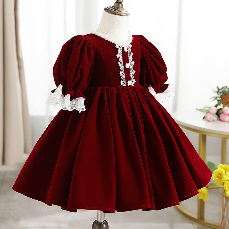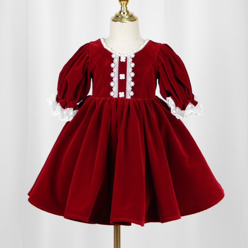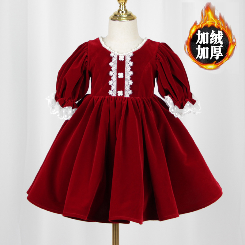 어린이의 새로운 가을과 겨울 공주 원피스 서양 스타일 소녀의 황금 벨벳 로리타 레드 원피스 어린이 아기 원피스스토어 가기