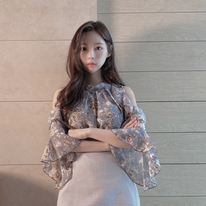 꽃무늬 쉬폰 셔츠 2024 여름 홀터넥 오프숄더 탑 원숄더 셔츠 여성용 패셔너블하고 달콤한 스타일 인스타 트렌드스토어 가기