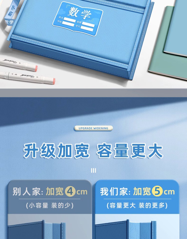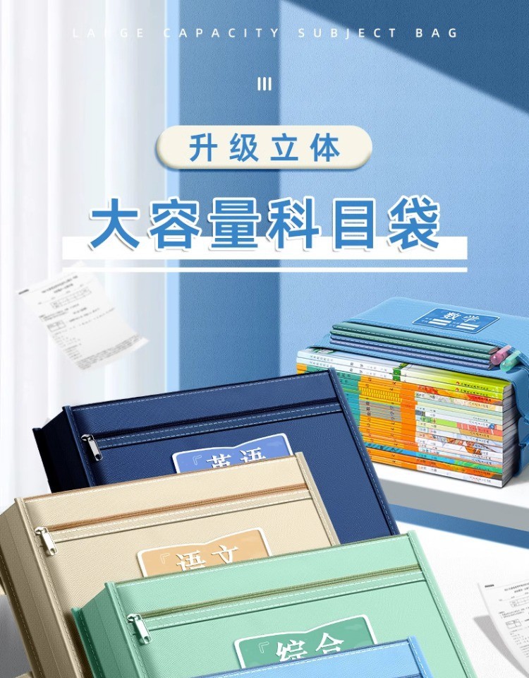 학생 주제 가방 2 중 입체 대용량 파일 가방 두꺼운 휴대용 튜토리얼 보관 가방 문구 가방 지퍼형스토어 가기