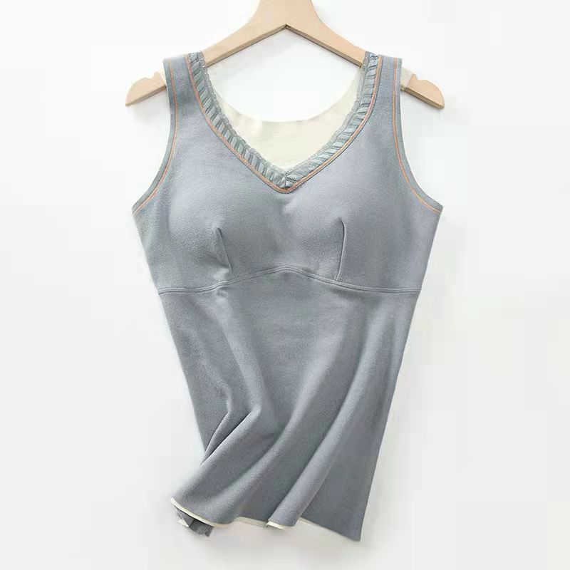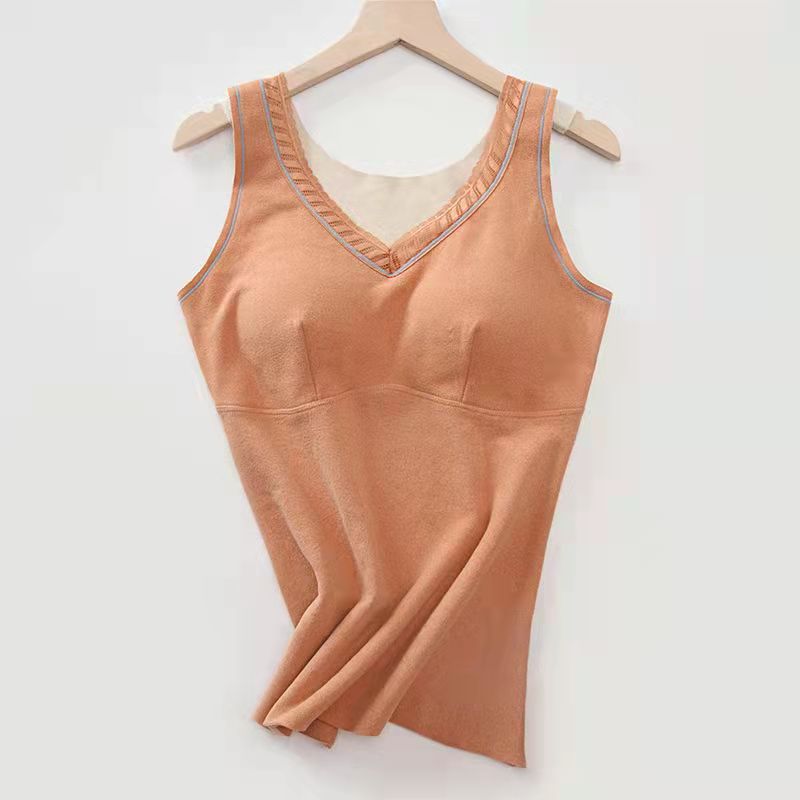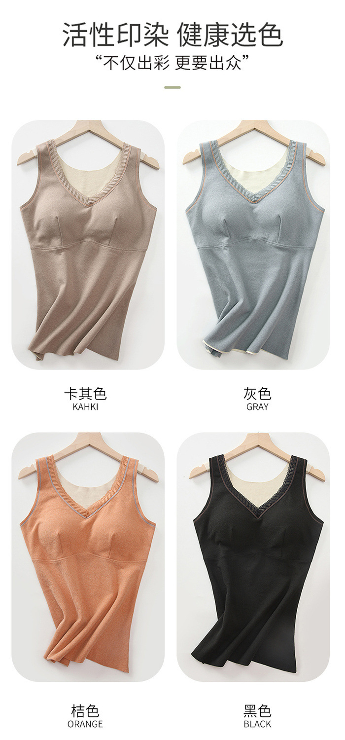 가을과 겨울 독일 벨벳 원활한 열 속옷 여성의 두꺼운 기모 슬림 조끼 자체 발열 기본 탑 가슴 패드