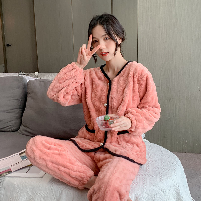 260g 봉제 잠옷 여성의 가을과 겨울 두꺼운 새로운 컷 양털 산호 양털 가정 옷 세트 라이브 4XL스토어 가기