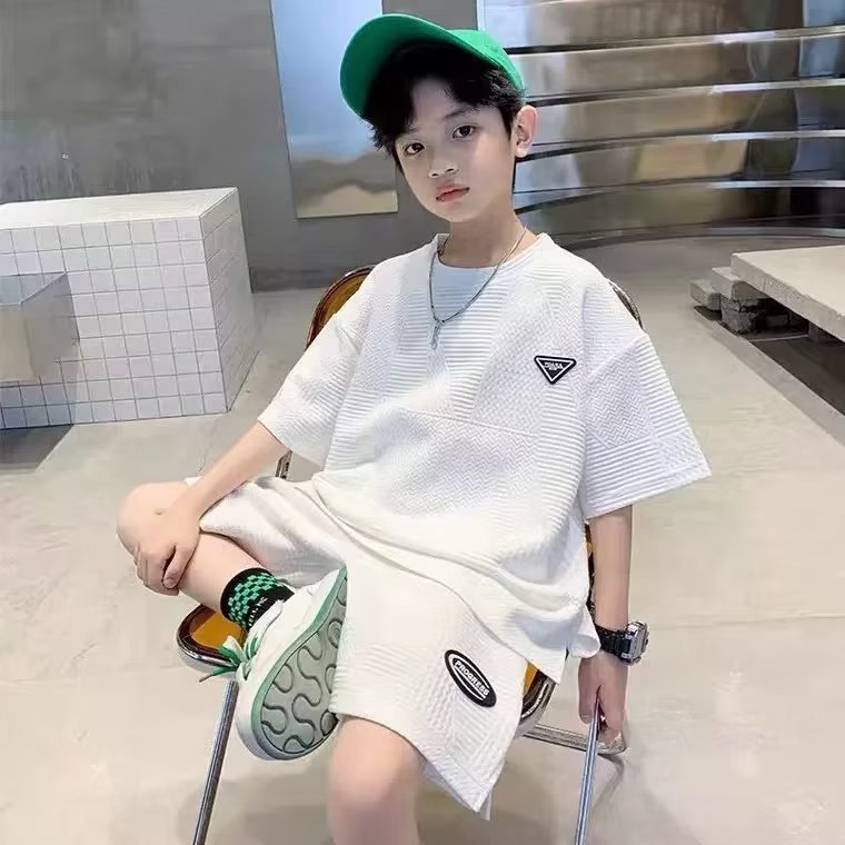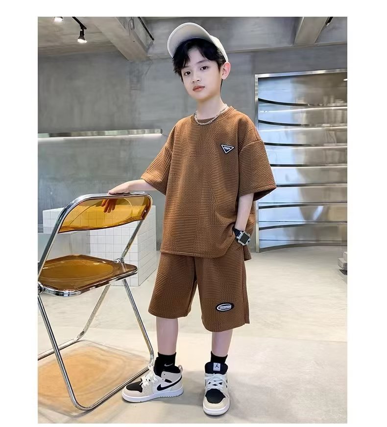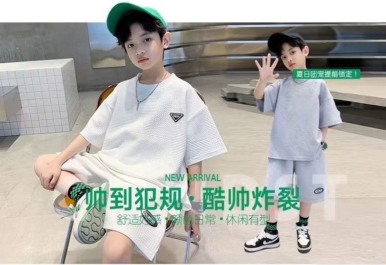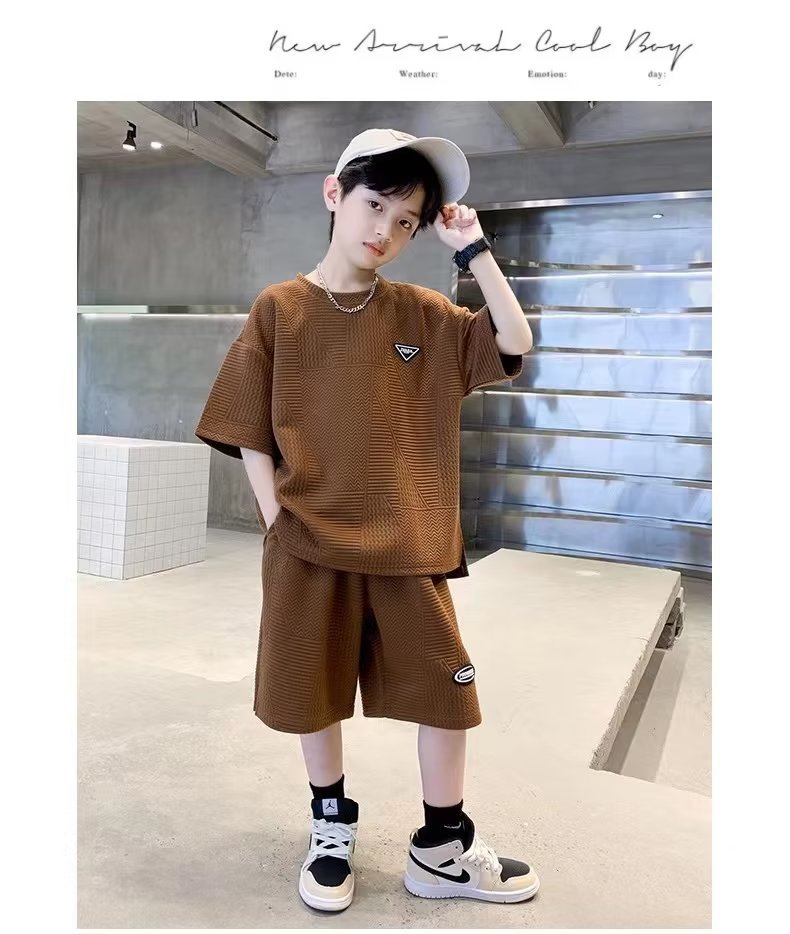 아동복 소년 여름 정장 2025 새로운 스타일 중대형 어린이 소년 의류 여름 반팔 얇고 멋지고 트렌디합니다.