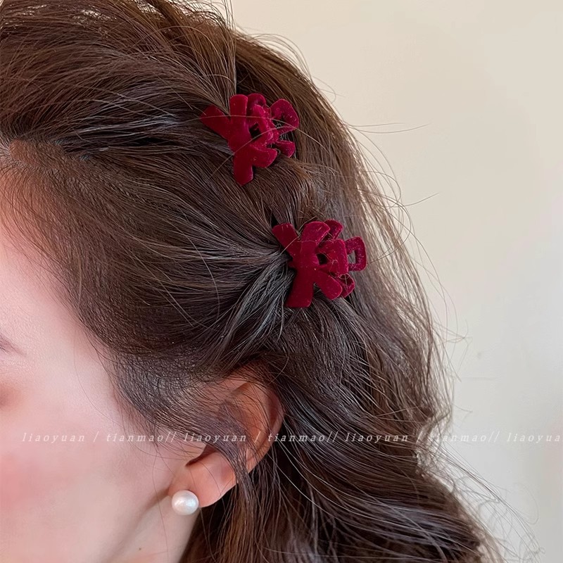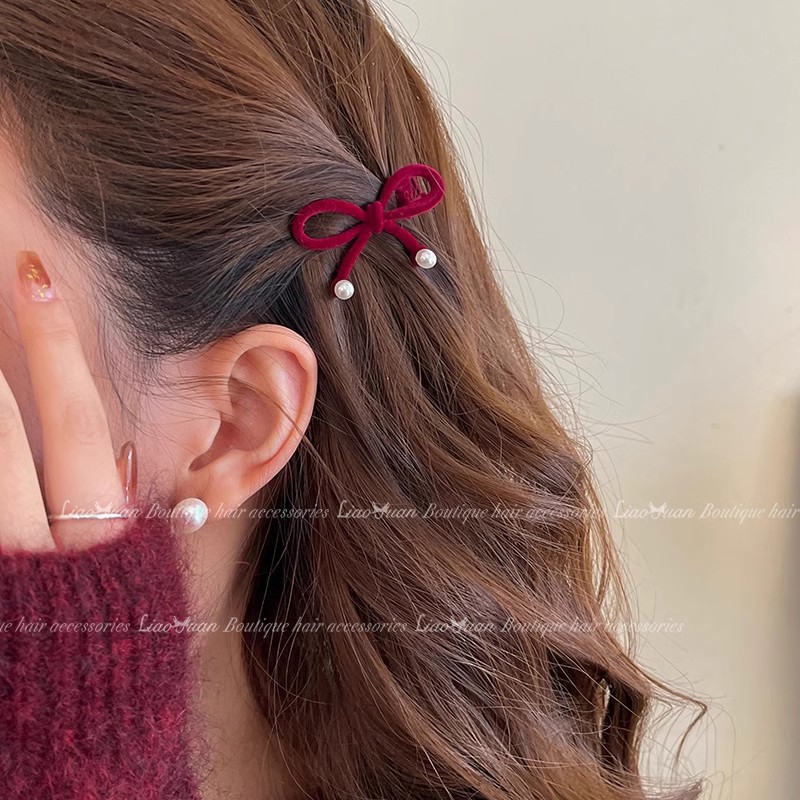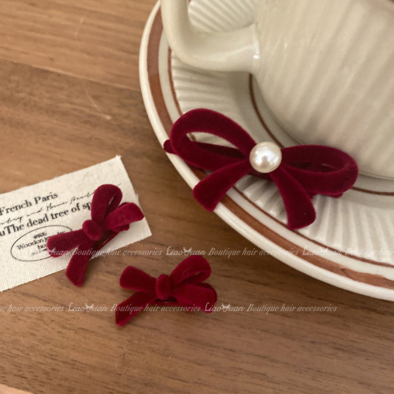 복고풍의 정교한 리본 머리핀 귀여운 작은 앞머리 클립 여성용 고급스러운 빨간색 옆머리 클립 신상품스토어 가기