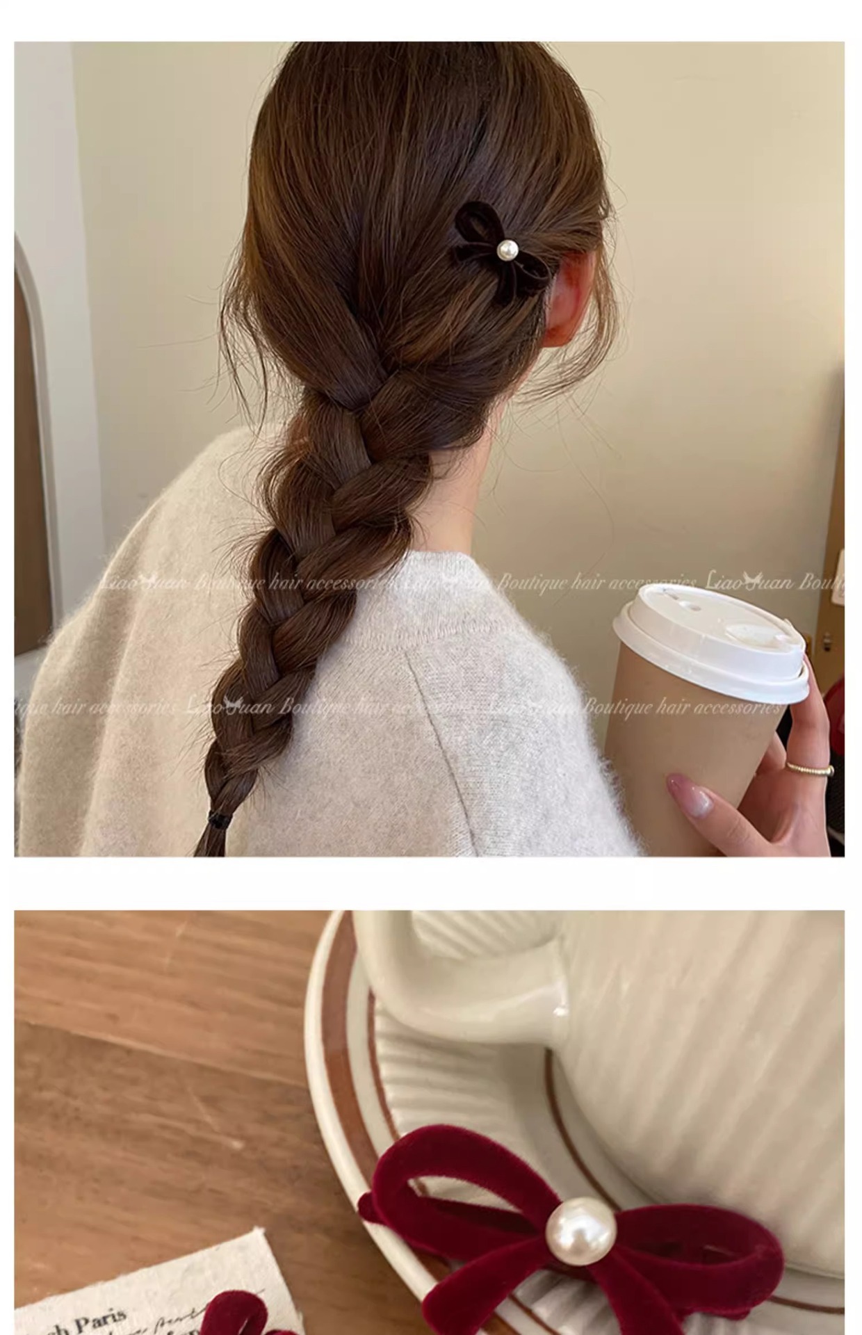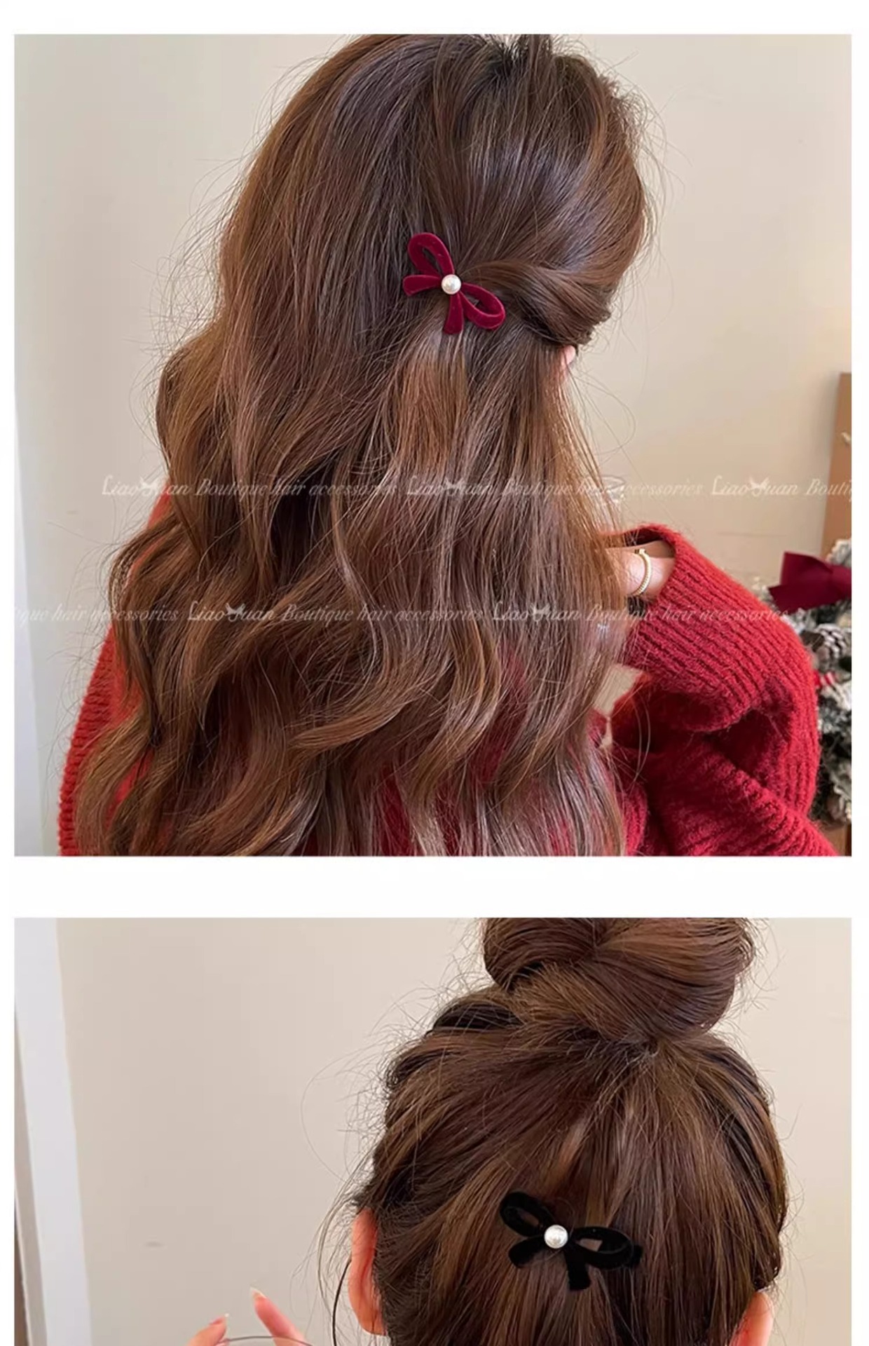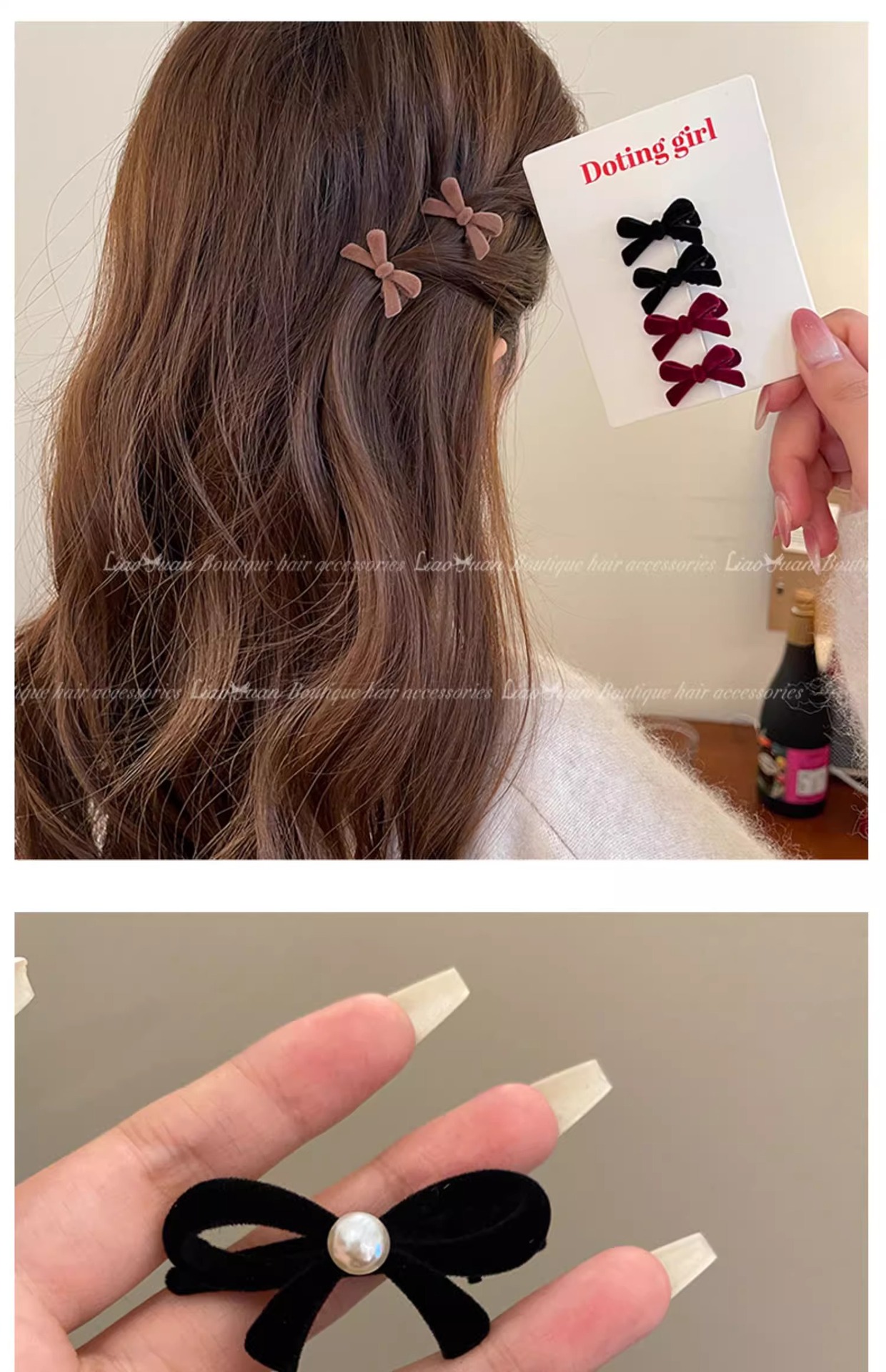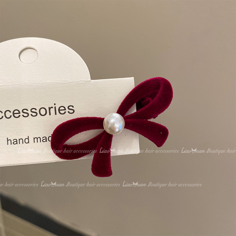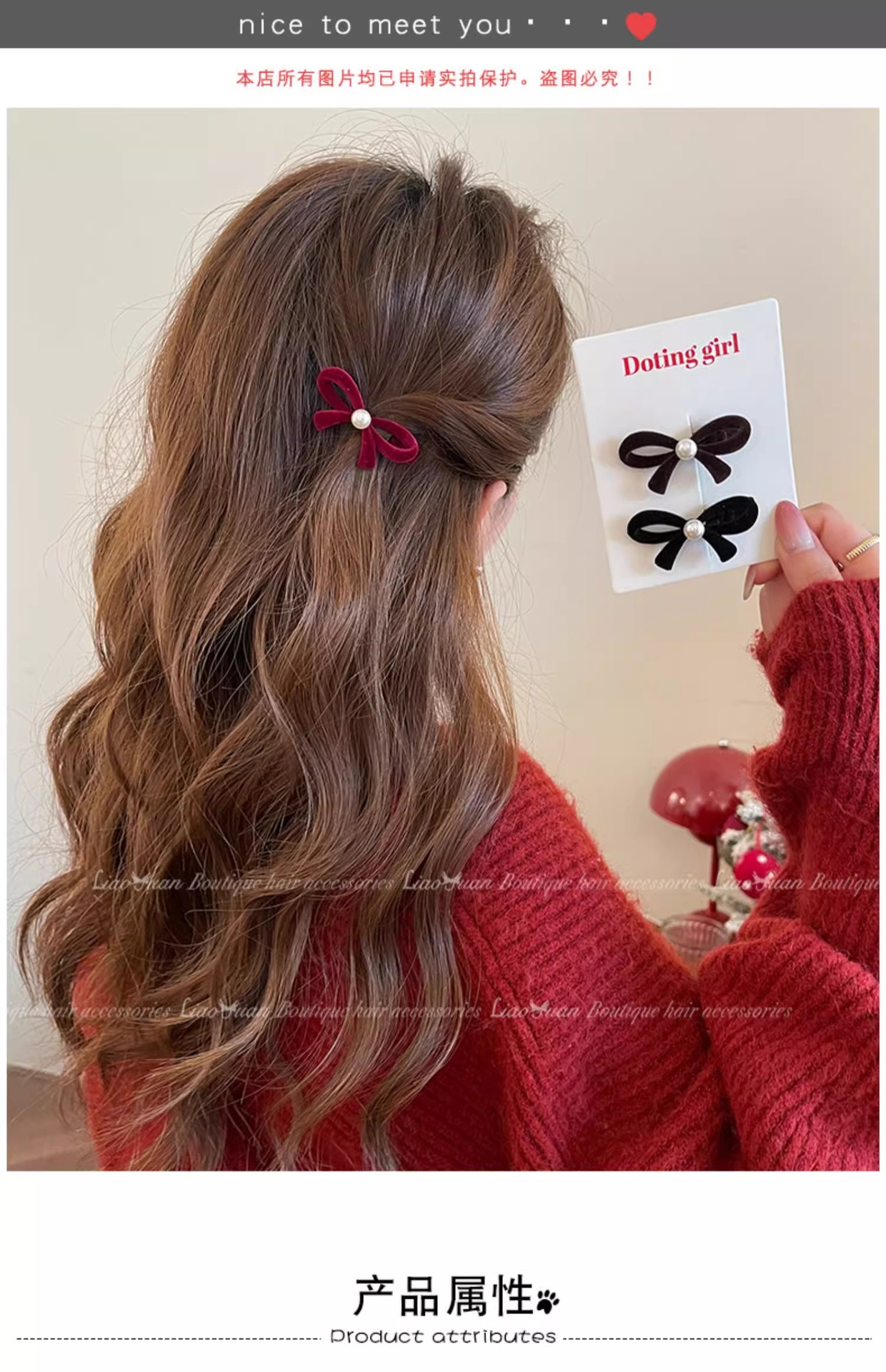 복고풍의 정교한 리본 머리핀 귀여운 작은 앞머리 클립 여성용 고급스러운 빨간색 옆머리 클립 신상품