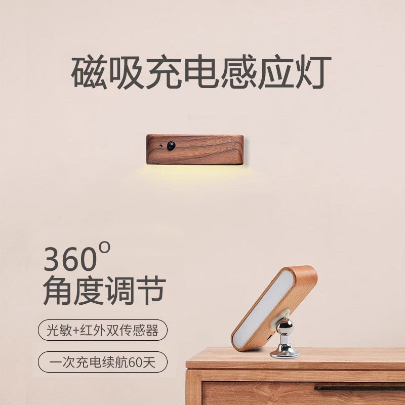 지능형 인체 센서 램프 로그 야간 조명 홈 통로 복도 LED 야간 조명 자기 충전 벽 램프
