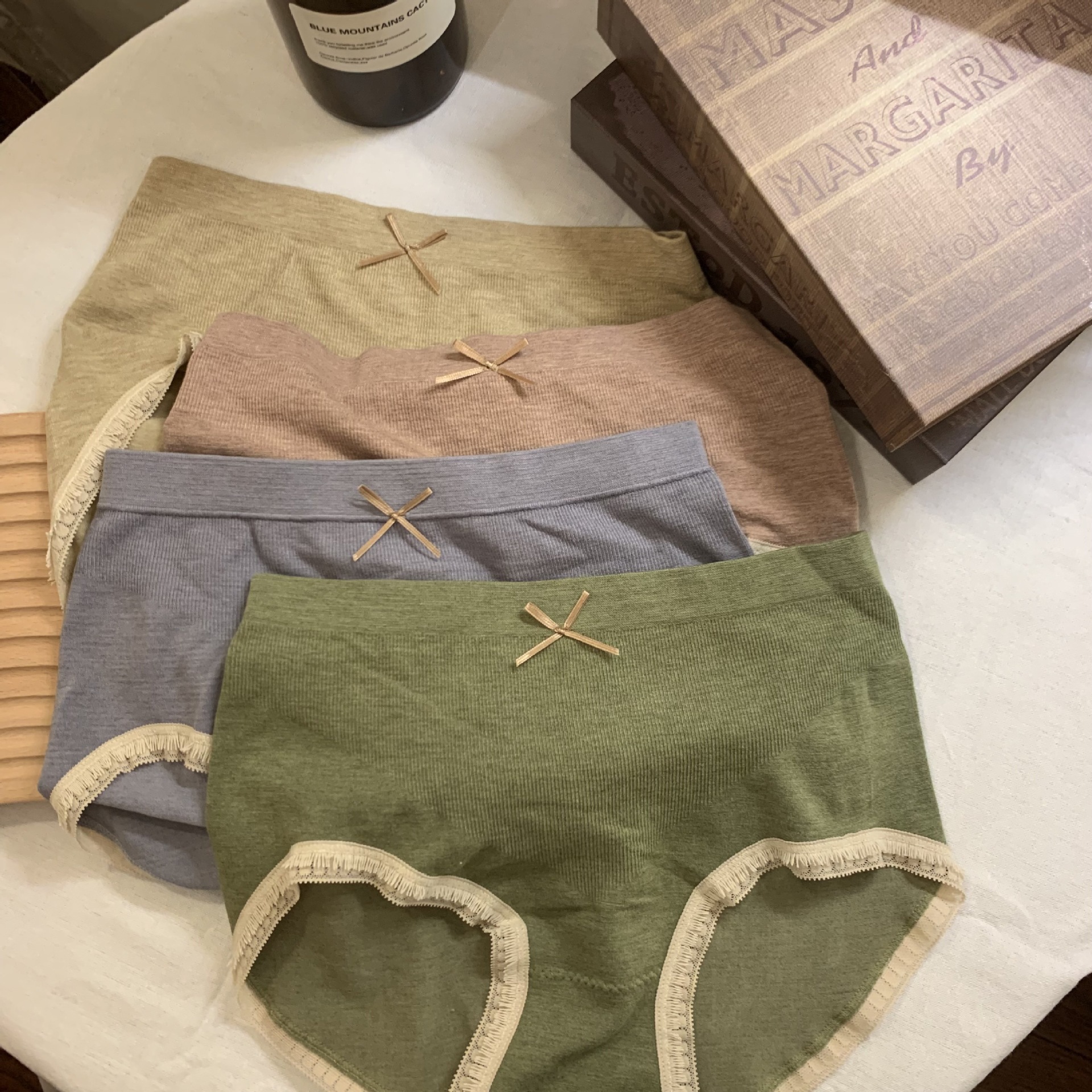 일본식 심플 모달 여성 속옷 여성용 미드 웨이스트 고탄성 편안한 레이스 트리밍 순면 가랑이 통기성 팬티
