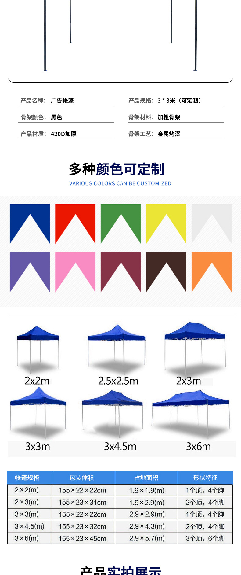 • 3*6M 포장 용량 155*23*45cm 바닥 면적 2.9*5.7m 형상 특징 3 상단 6 피트