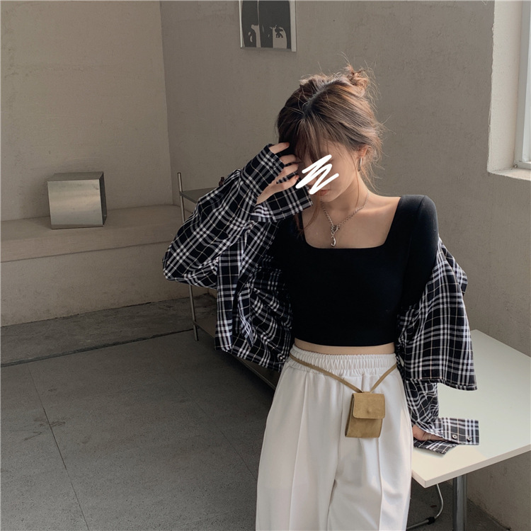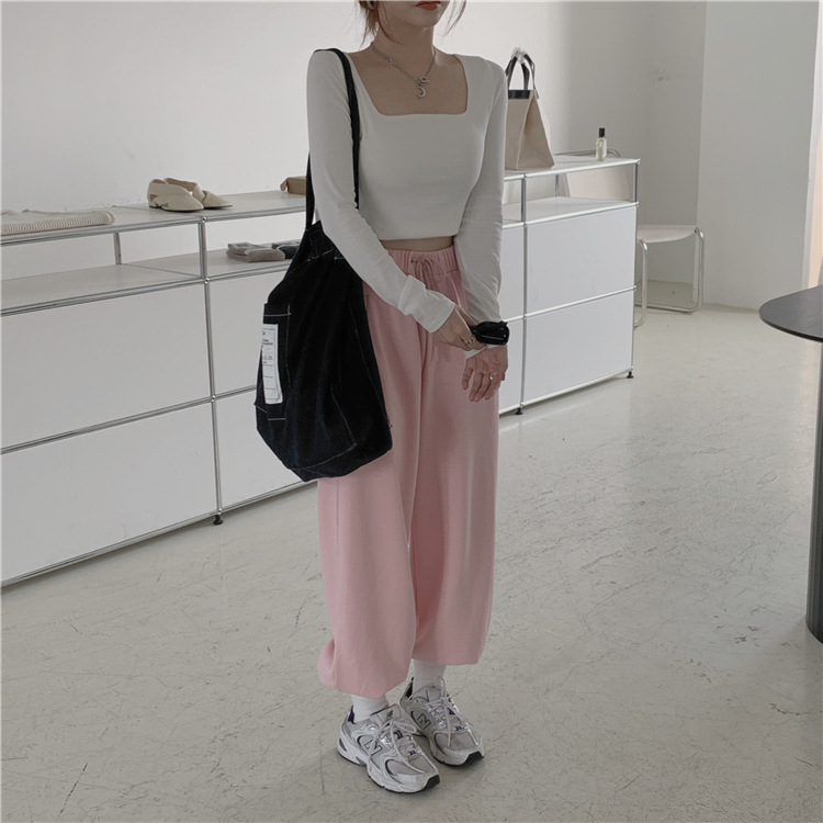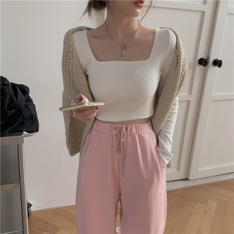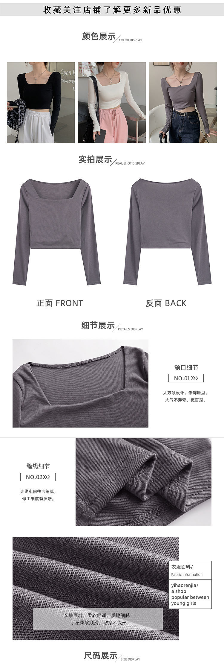 스퀘어 칼라 쇼트 탑 여성용 가을 새로운 슬림핏 이너베이스 셔츠 여성용 긴팔 티셔츠스토어 가기