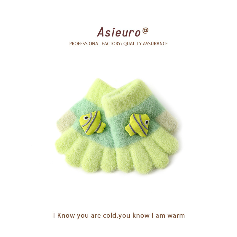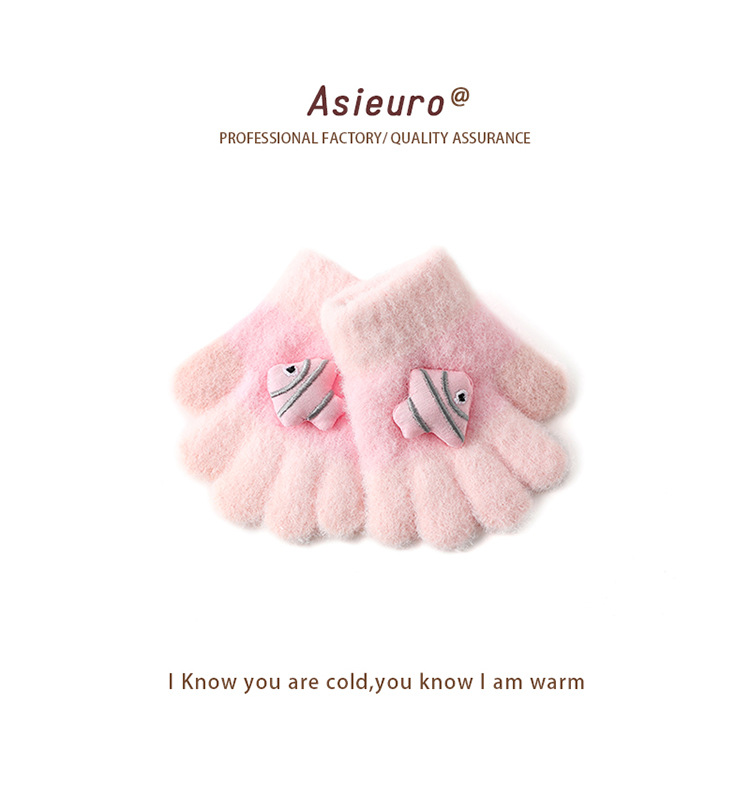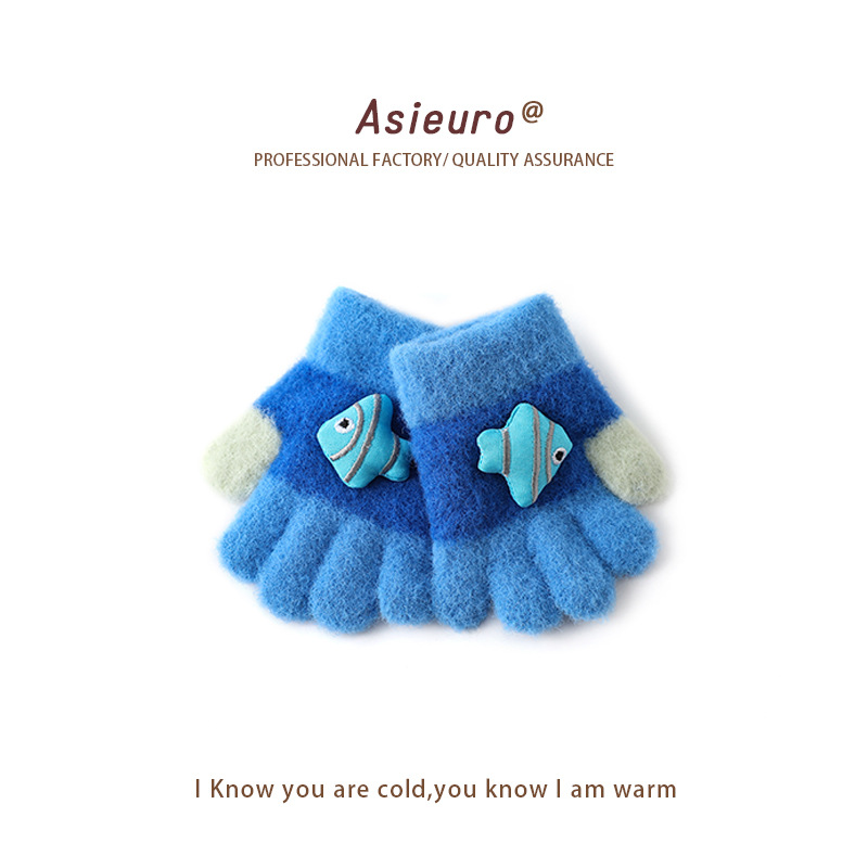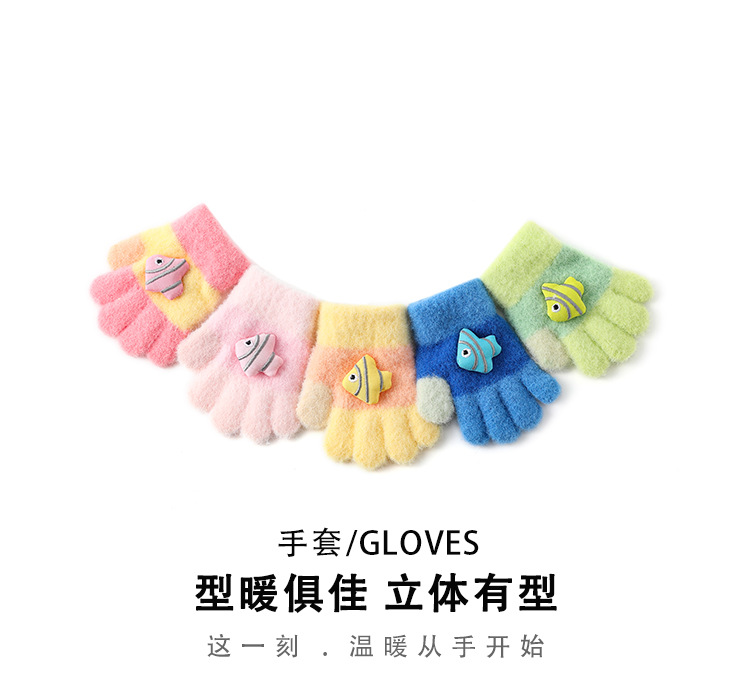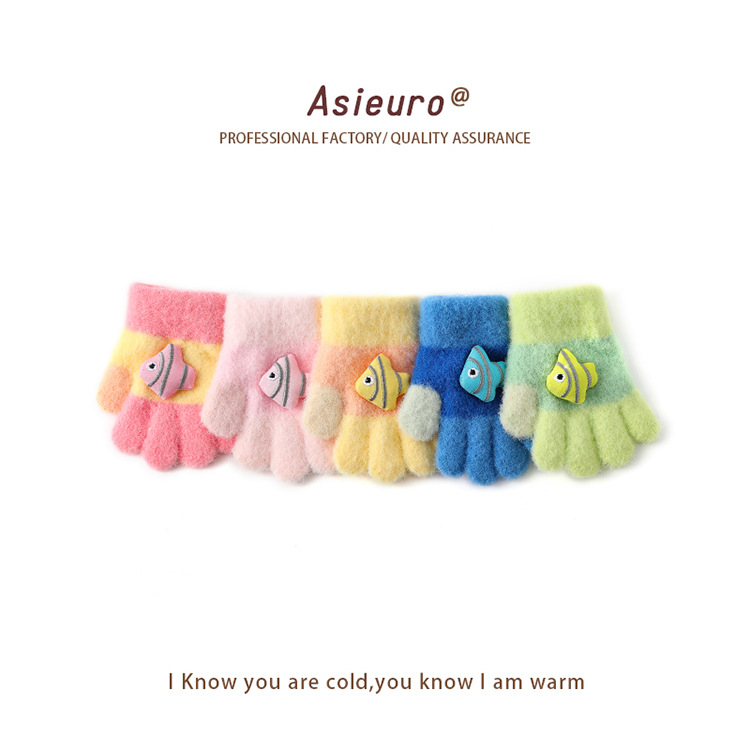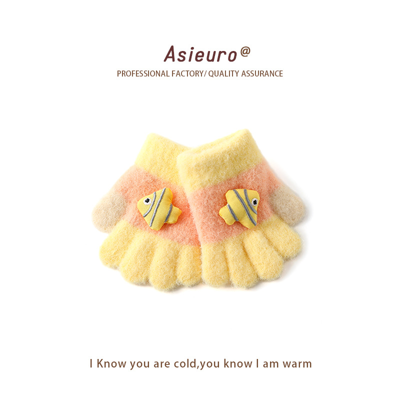 어린이용 다섯 손가락 장갑, 겨울철 남아 여아용, 손가락이 분리된 보온 장갑, 귀여운 만화 캐릭터, 플러시 소재, 두꺼운 방한 장갑, 만화 캐릭터 보온 장갑