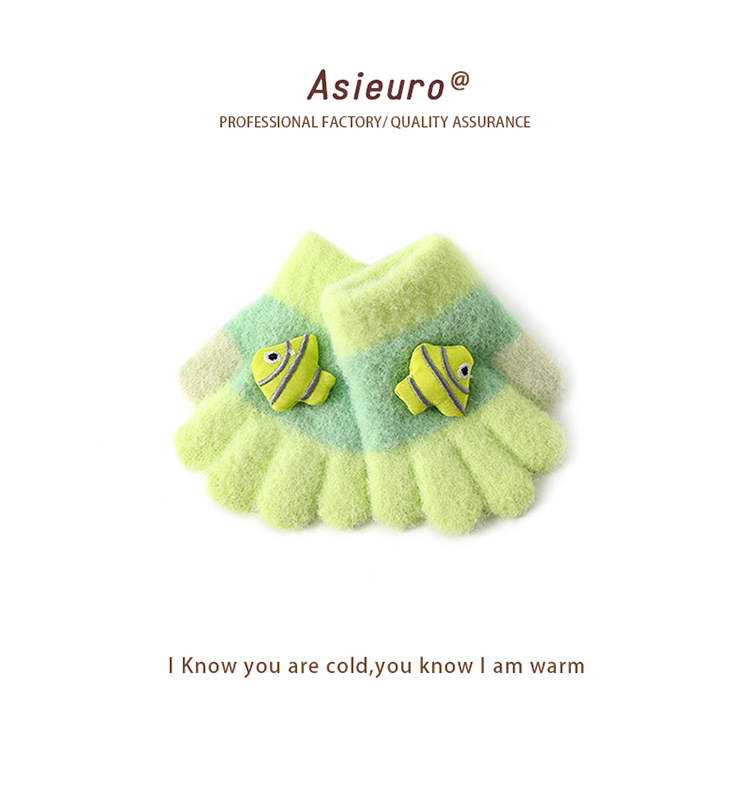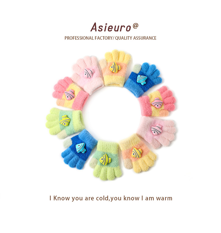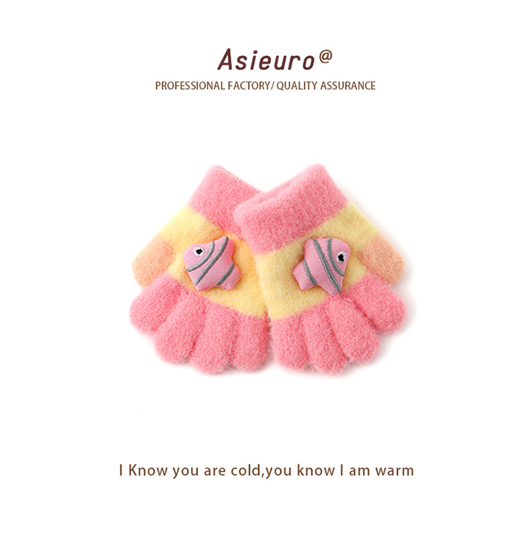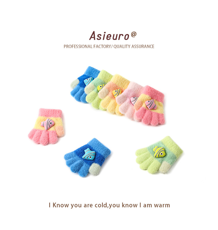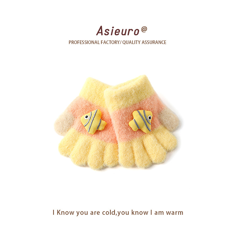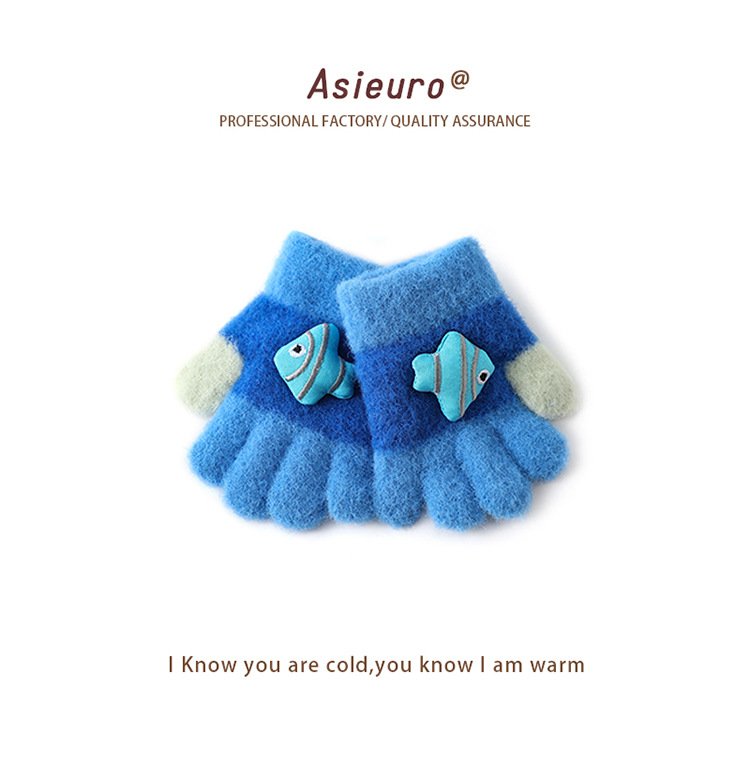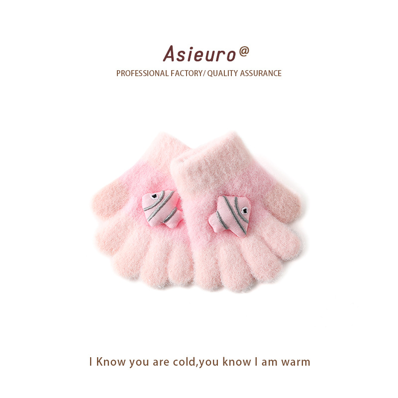 어린이용 다섯 손가락 장갑, 겨울철 남아 여아용, 손가락이 분리된 보온 장갑, 귀여운 만화 캐릭터, 플러시 소재, 두꺼운 방한 장갑, 만화 캐릭터 보온 장갑