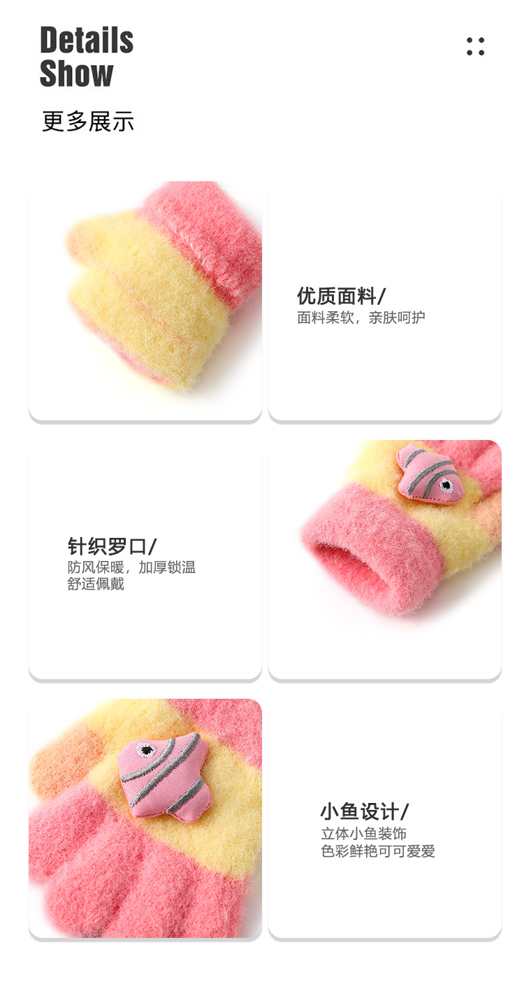 어린이용 다섯 손가락 장갑, 겨울철 남아 여아용, 손가락이 분리된 보온 장갑, 귀여운 만화 캐릭터, 플러시 소재, 두꺼운 방한 장갑, 만화 캐릭터 보온 장갑스토어 가기
