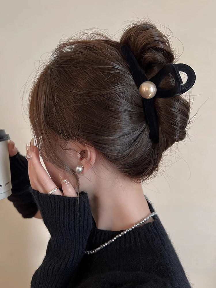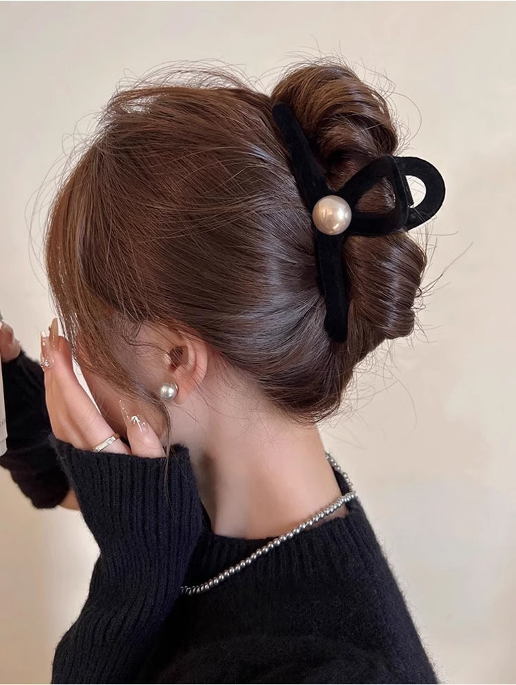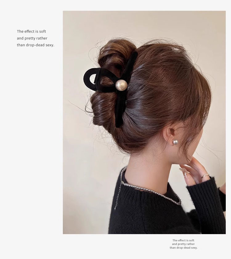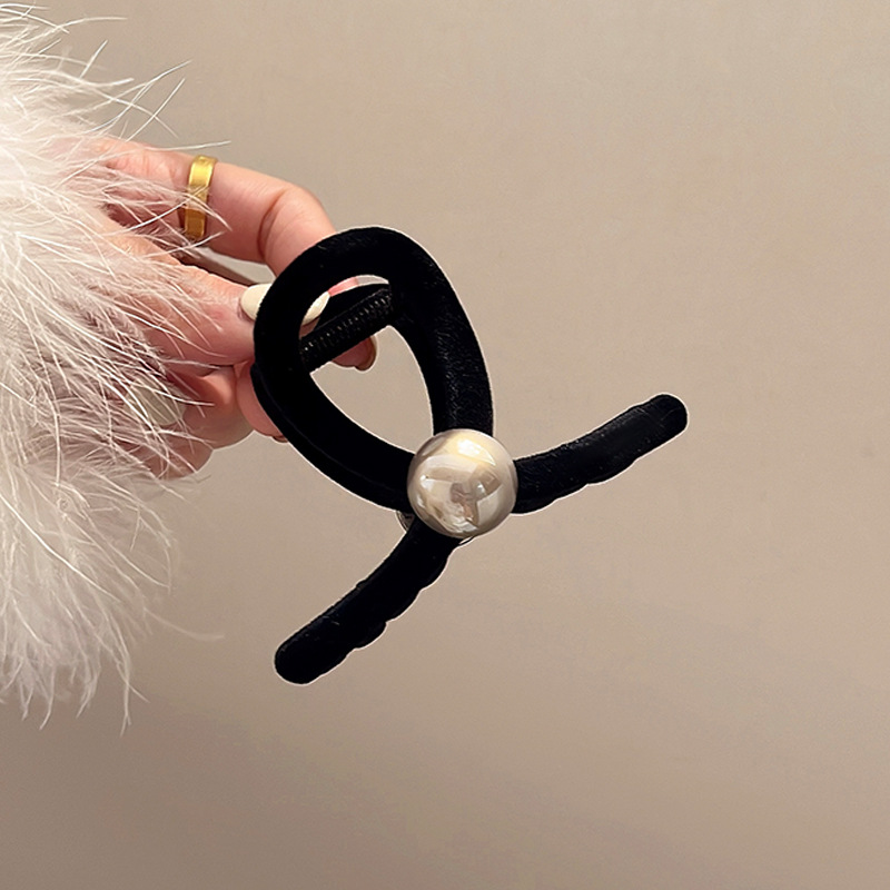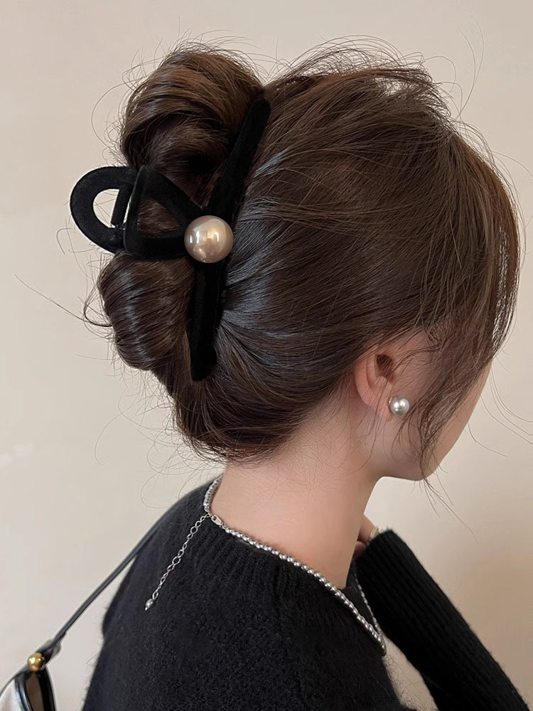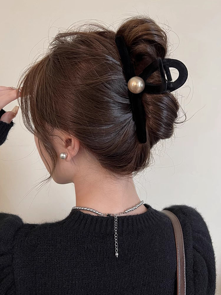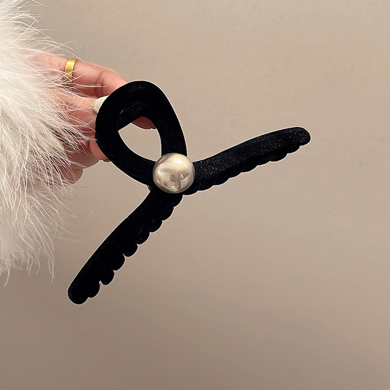프랑스 복고풍 블랙 벨벳 그랩 클립 여성용 대형 백 헤드 디스크 헤어 클립 고급 상어 클립 머리핀 모자