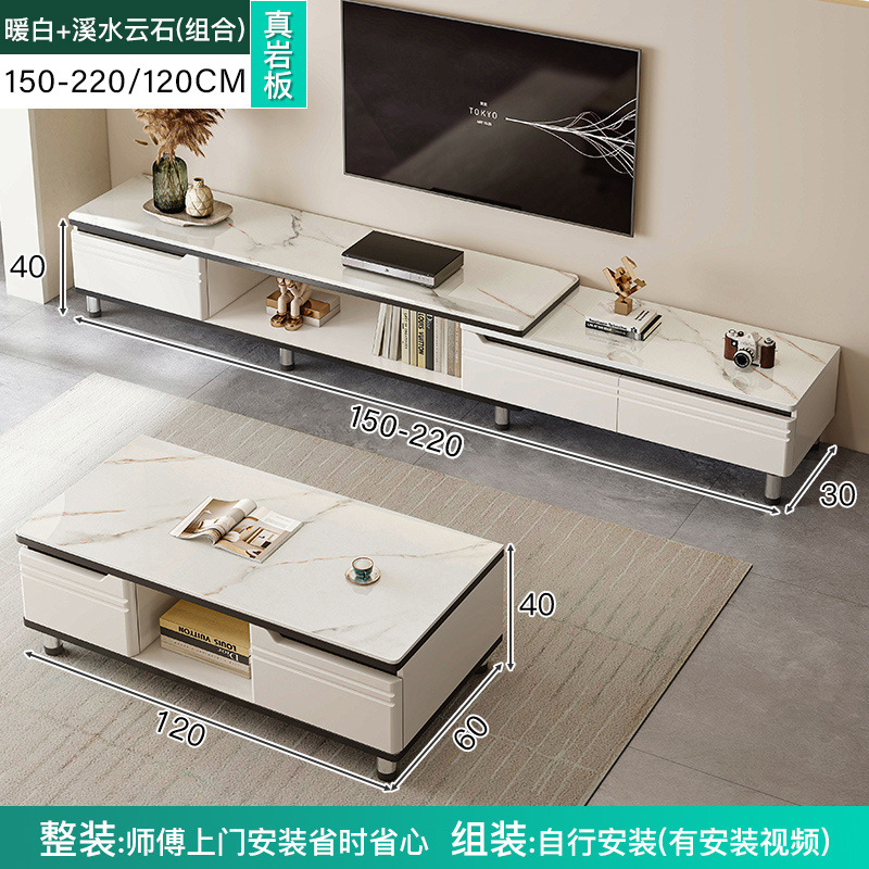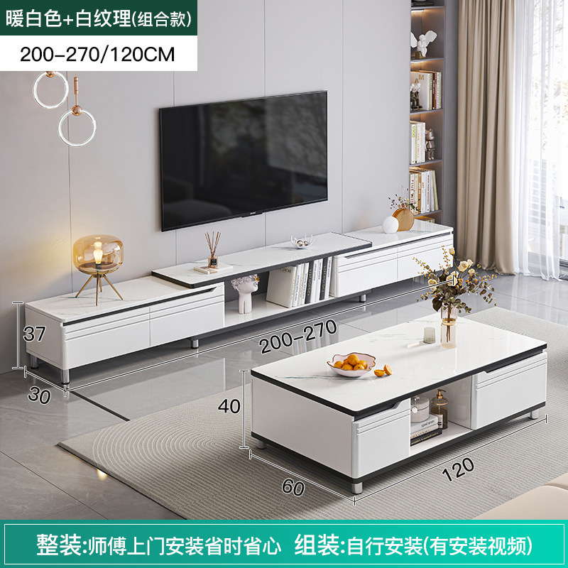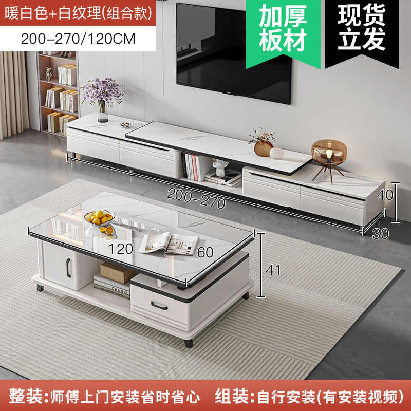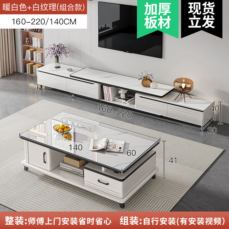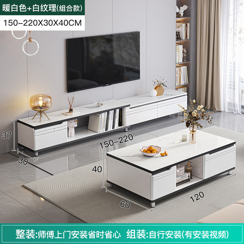 • [TV 캐비닛 + 커피 테이블] 따뜻한 흰색 단방향 텔레스코픽 {150-220cm}