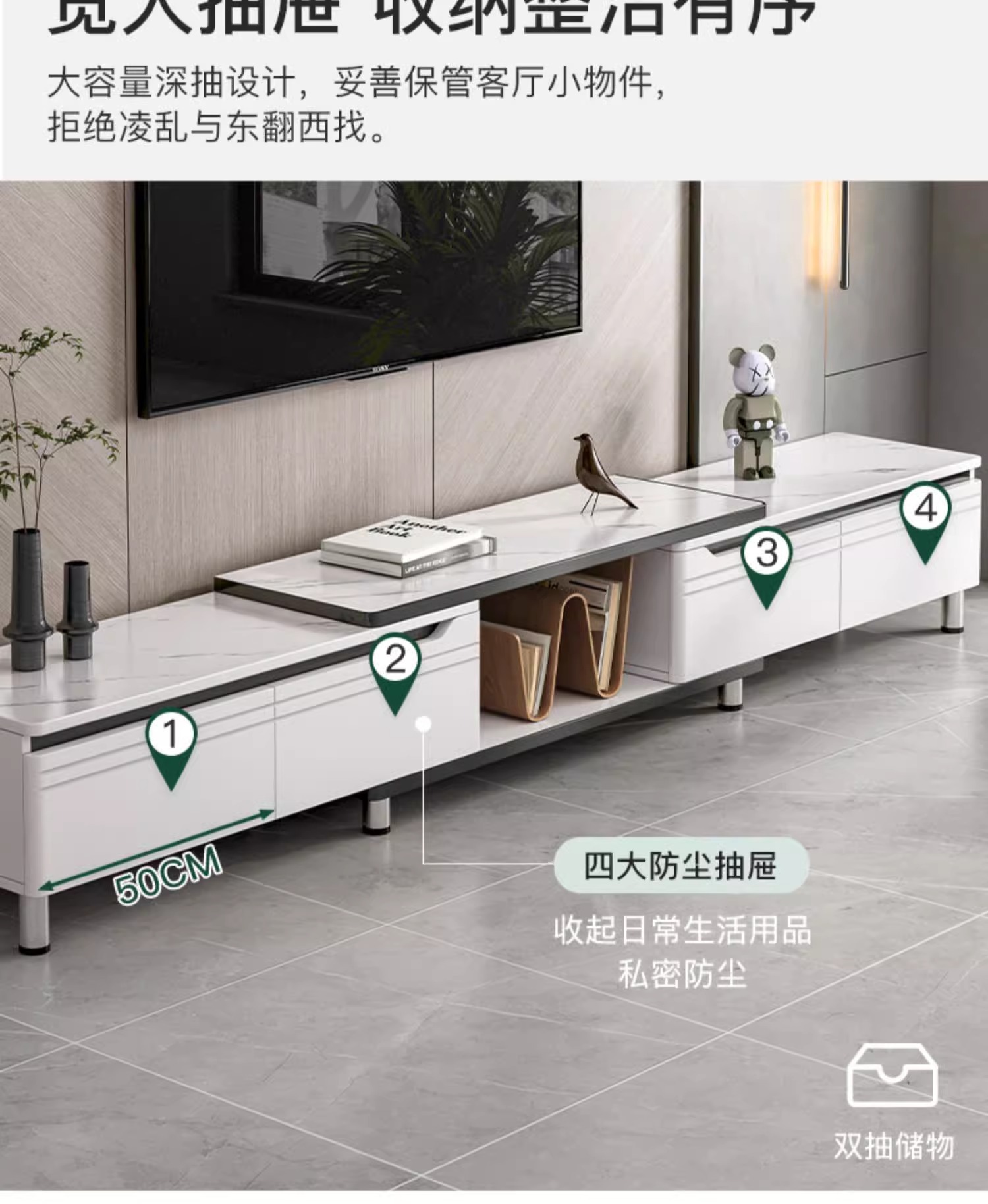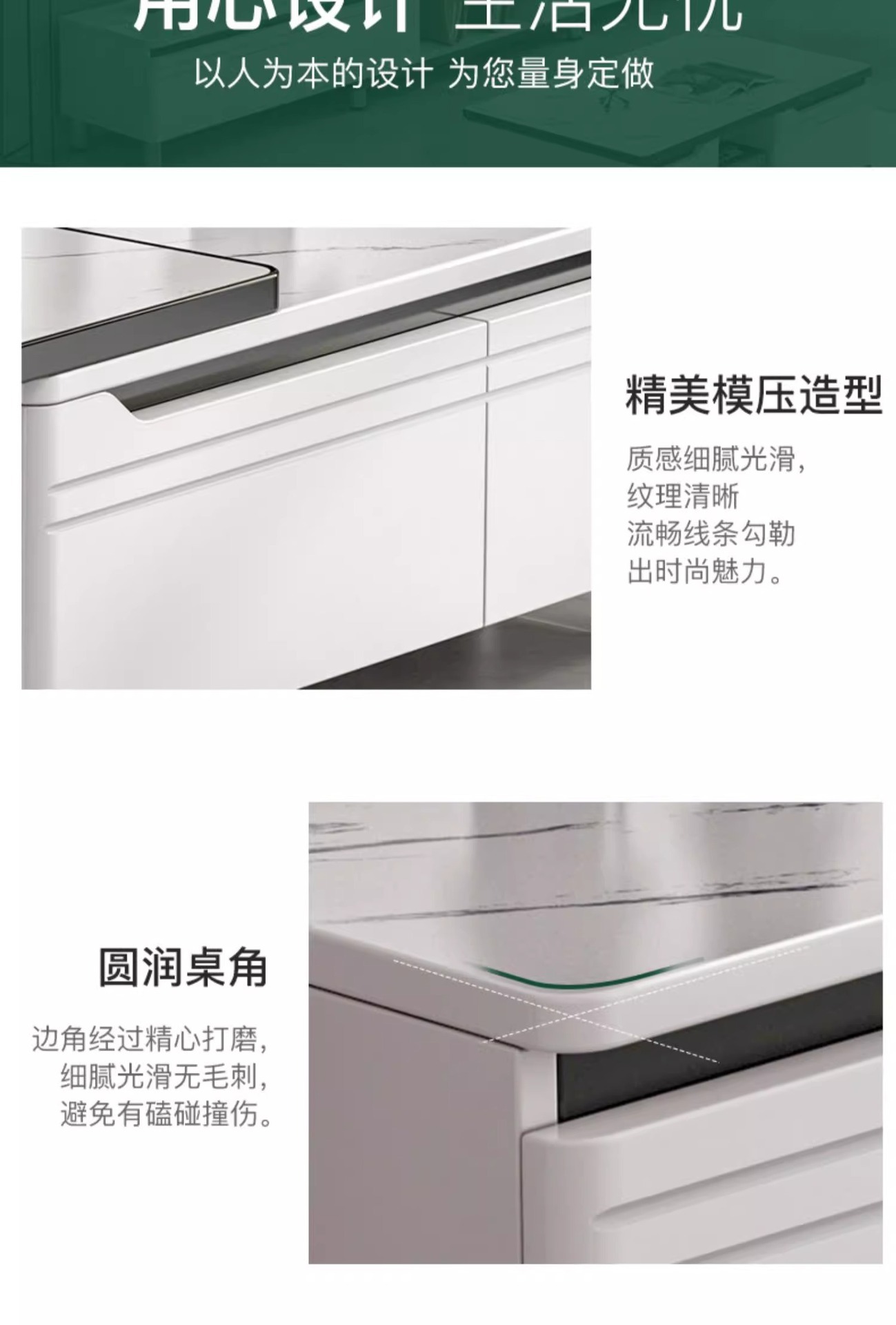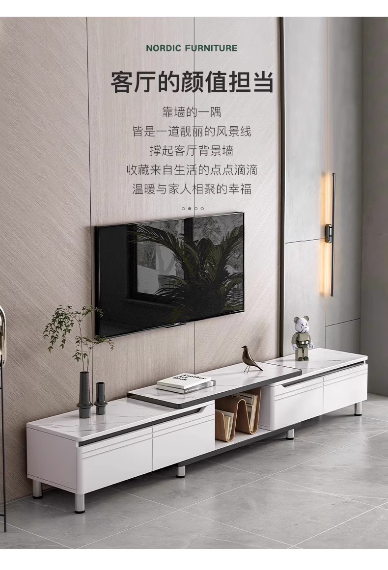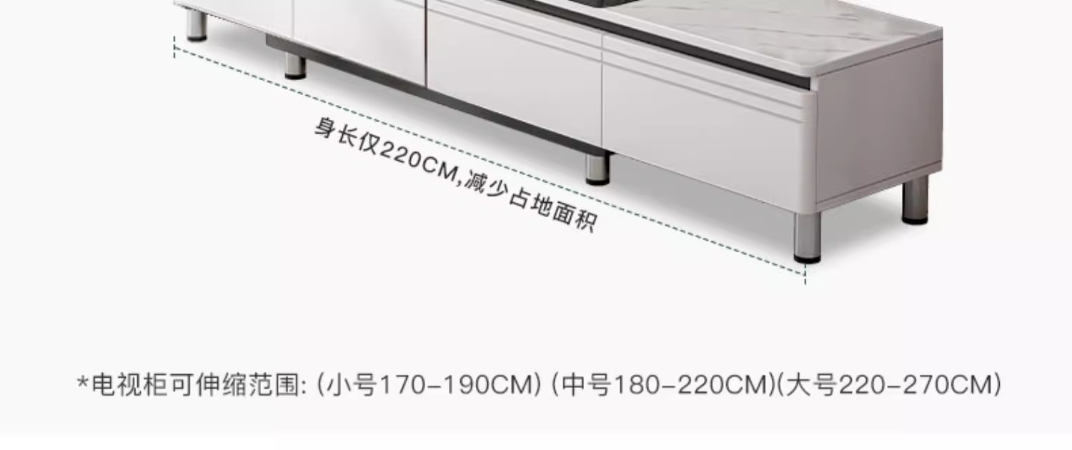• [TV 캐비닛 + 커피 테이블] 따뜻한 흰색 양방향 텔레스코픽 {160-220cm}