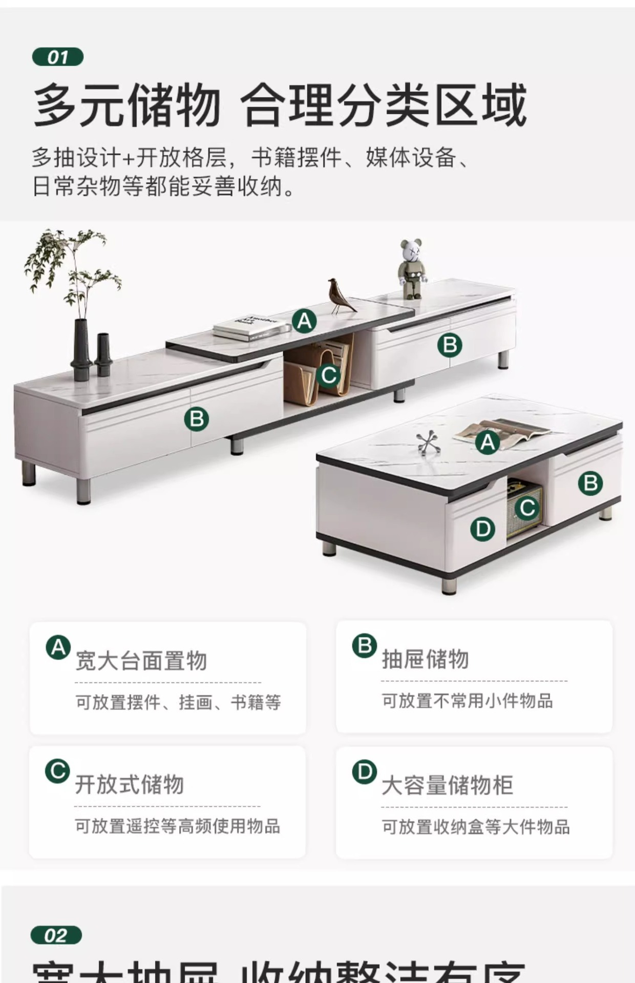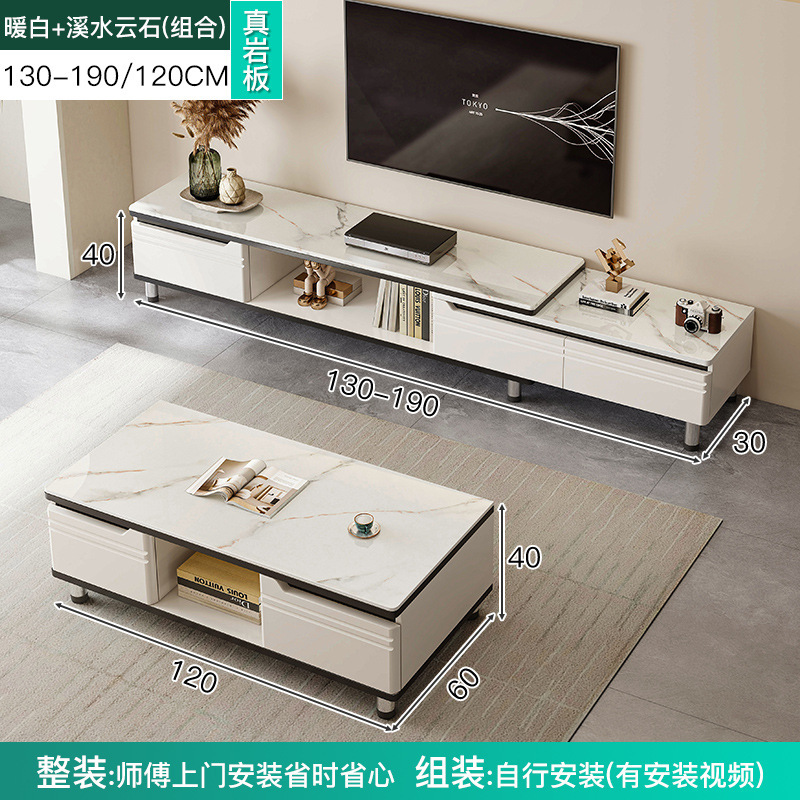 • [TV 캐비닛 + 커피 테이블] 따뜻한 흰색 단방향 텔레스코픽 {130-190cm}