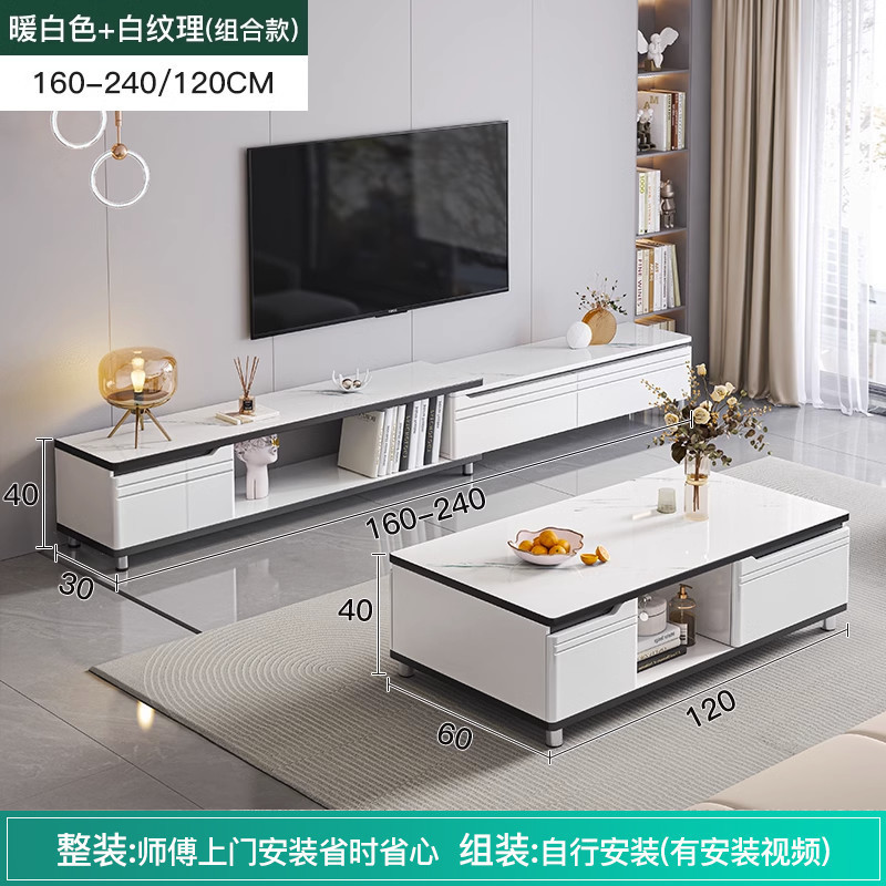 • [TV 캐비닛 + 커피 테이블] 따뜻한 흰색 단방향 텔레스코픽 {160-240cm}