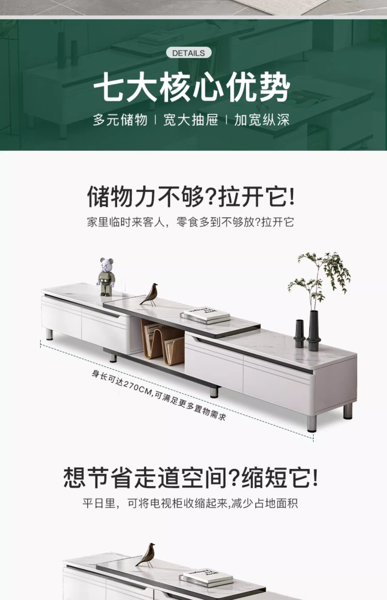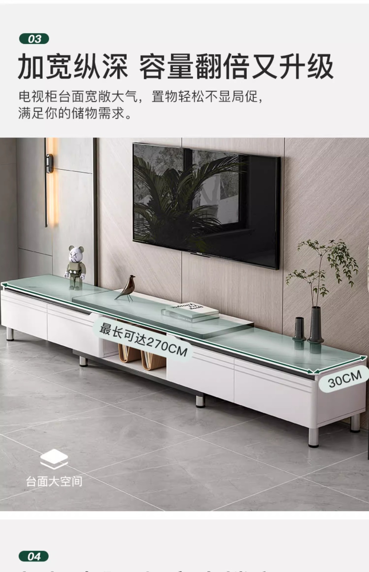 • [TV 캐비닛 + 커피 테이블] 따뜻한 흰색 양방향 텔레스코픽 {200-270cm}