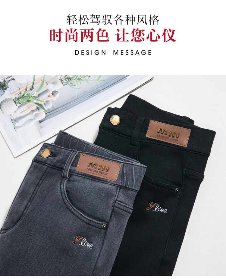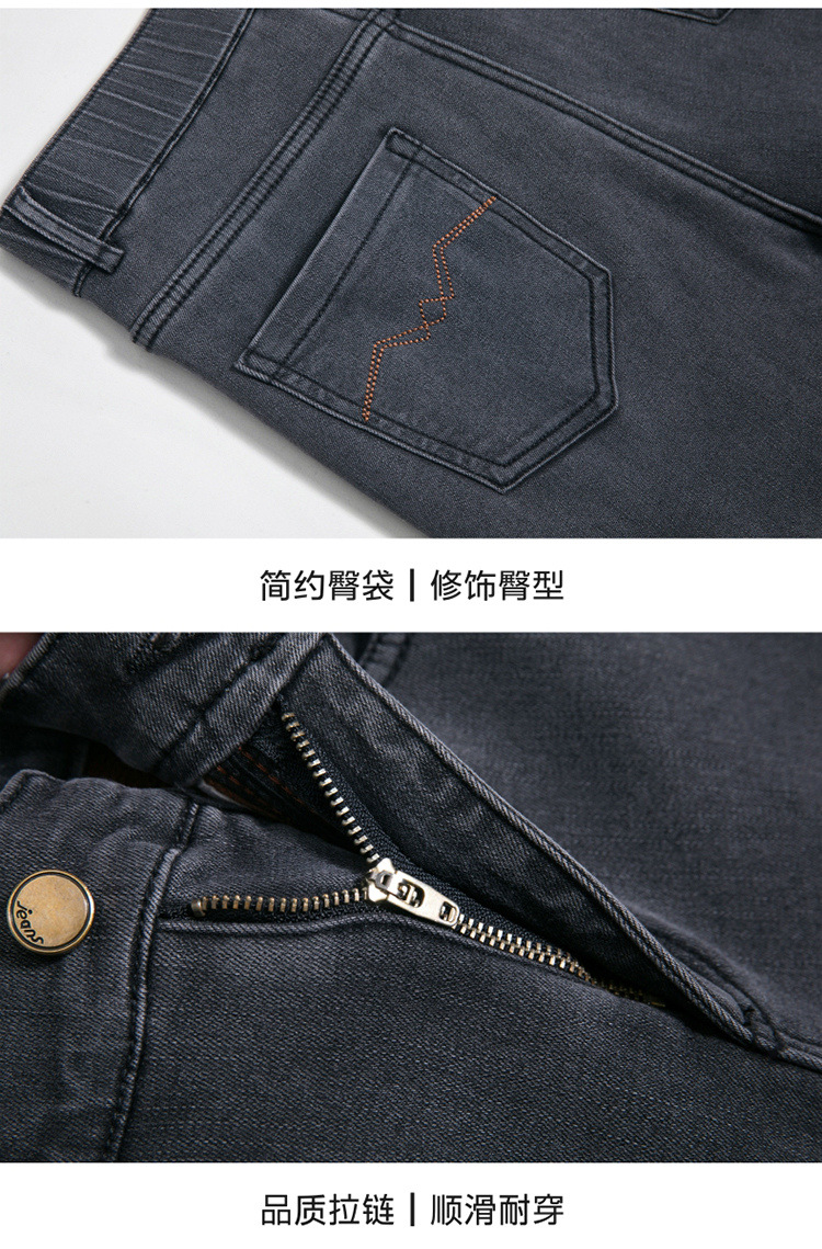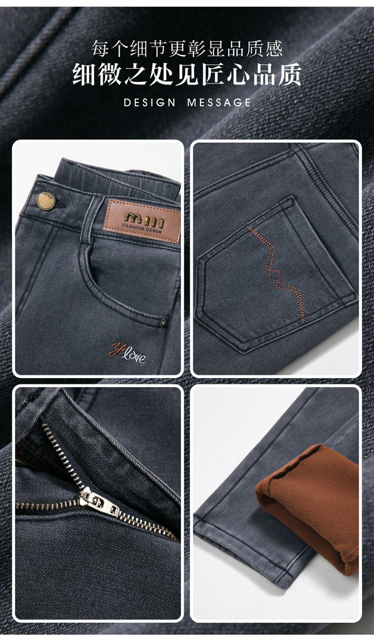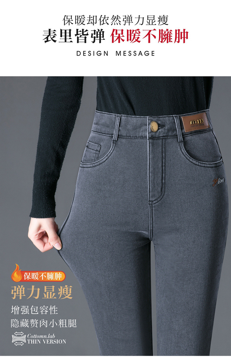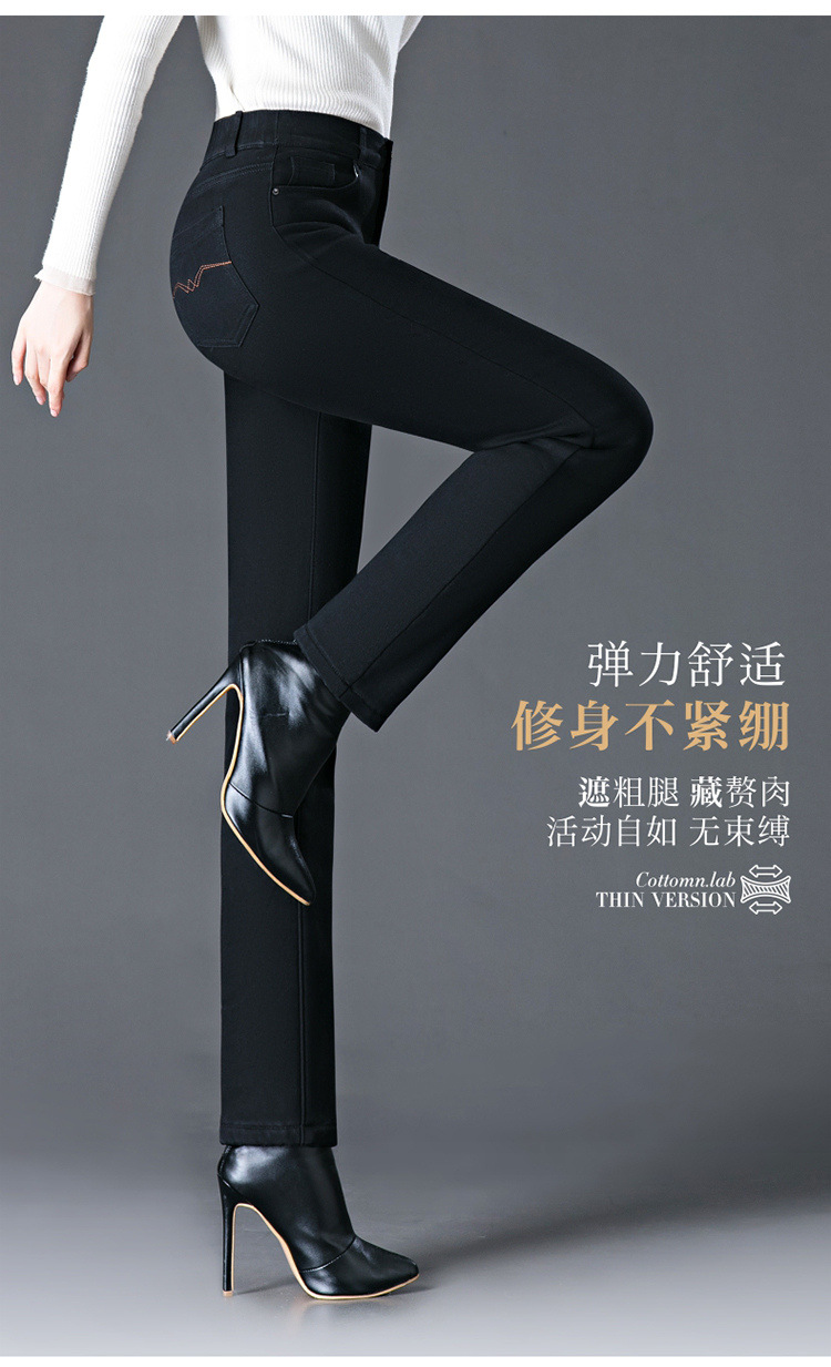 스모크 그레이 기모 청바지 여성용 겨울 새 시즌 하이 웨이스트 스트레치 스트레이트 팬츠 중년 엄마를 위한 모든 매치 슬리밍 팬츠