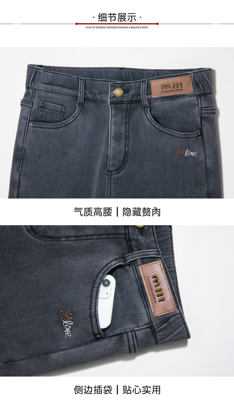 스모크 그레이 기모 청바지 여성용 겨울 새 시즌 하이 웨이스트 스트레치 스트레이트 팬츠 중년 엄마를 위한 모든 매치 슬리밍 팬츠스토어 가기